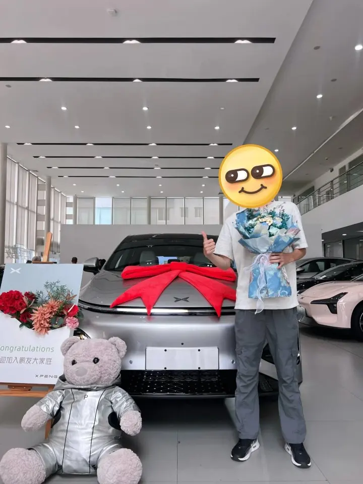 到交付中心是中午时间,看到车的外形感觉好像更大更帅了一些(试驾是白色的,感觉没银色的帅),然后也是吃上小鹏盒饭,喝上小鹏矿泉水了。吃饱喝足交付专员开始讲解用车指南,讲完就是拍照还有送小熊盲盒啦,抽到打领带的那只小熊忘记拍照了。整体感觉很不错,工作人员态度都很和善。