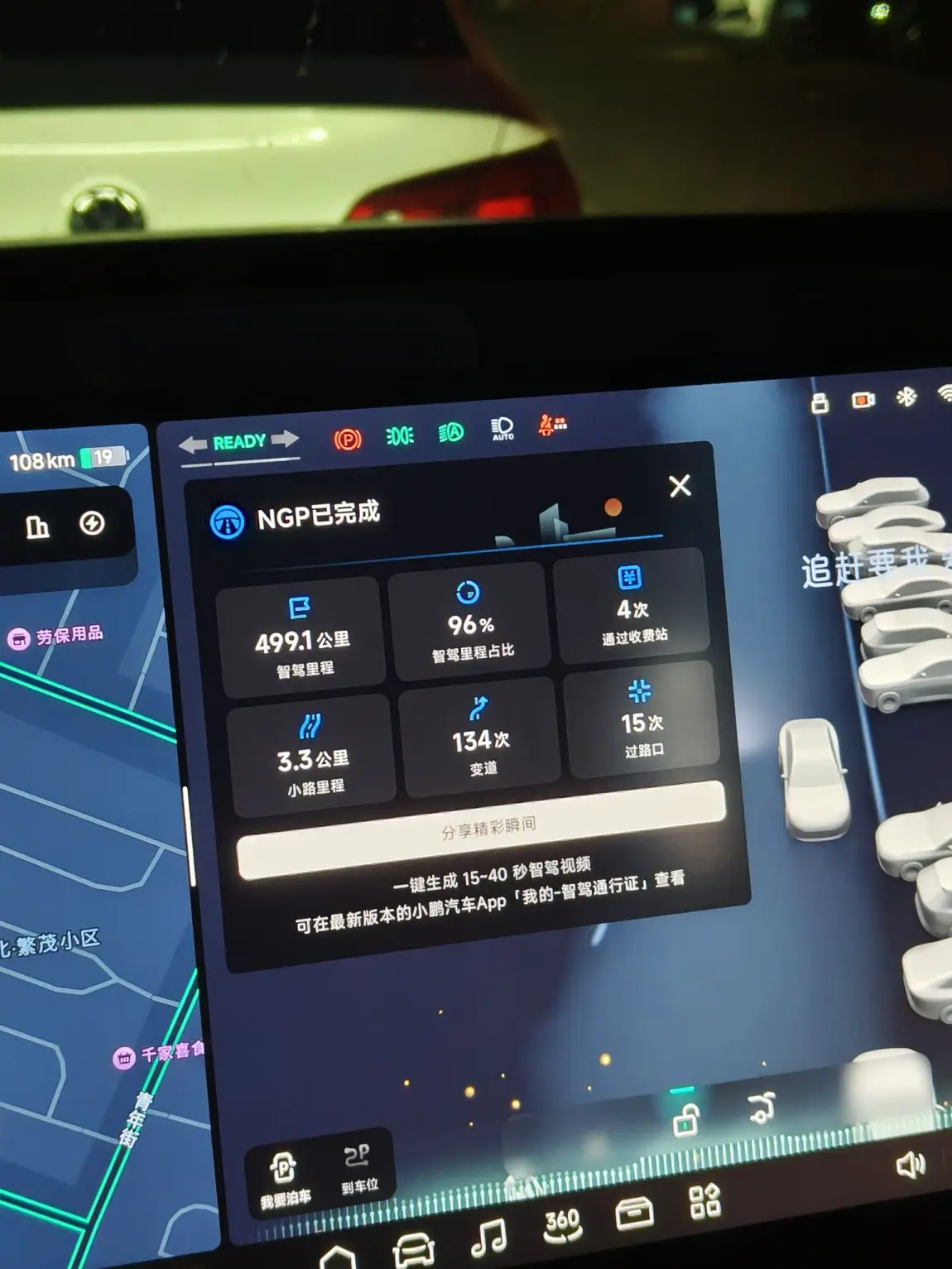 从长春出发时,我激活了小鹏的NGP功能。一路上,它展现出了强大的实力。全程智驾里程达到了4991公里(其中包含此次长春到大连的行程贡献),智驾里程占比高达96%。在高速路段,它能精准识别路况,自动变道134次,平稳通过收费站4次,甚至在一些复杂路口也能从容应对,过路口15次都表现得十分顺畅。