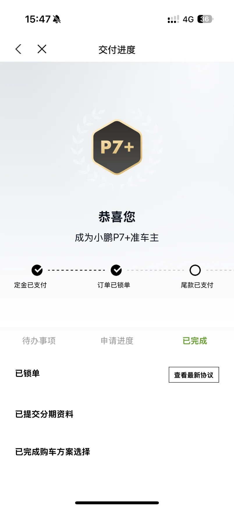 #我的提车作业# 从下定到提车一个星期,还挺快的,期间经历了台风,还害怕十一之前不能交付,不过还好,没有影响交付,一开始是打算看03的结果去了4S店一眼就看中了P7+,适合家庭开后排空间足够大,还有后排娱乐屏小孩子上车就看电视,这样子就不会在车上吵闹了!目前开了一个多星期了,很适应,很舒服!
