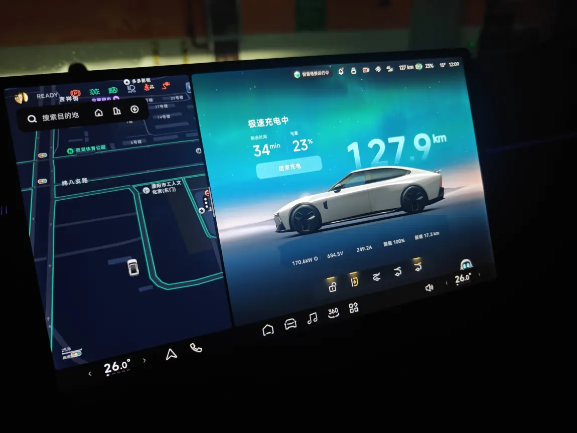 小鹏这个无感充电确实让人觉得舒服,车辆自动泊车到车位后,插枪瞬间会自动识别车辆,不用像第三方的充电桩需要扫码不用充值,插直接170kw的电流,半小时就能充满。相比国庆期间用的高速上的第三方充电桩方便太多了,标的240kw功率,可电流太低了,通常最高也才80kw,充电速度实在是慢。半夜来我们这的小鹏充电桩,还有个原因是便宜,带服务费才四毛九一度,充满30块钱,还是用的积分。