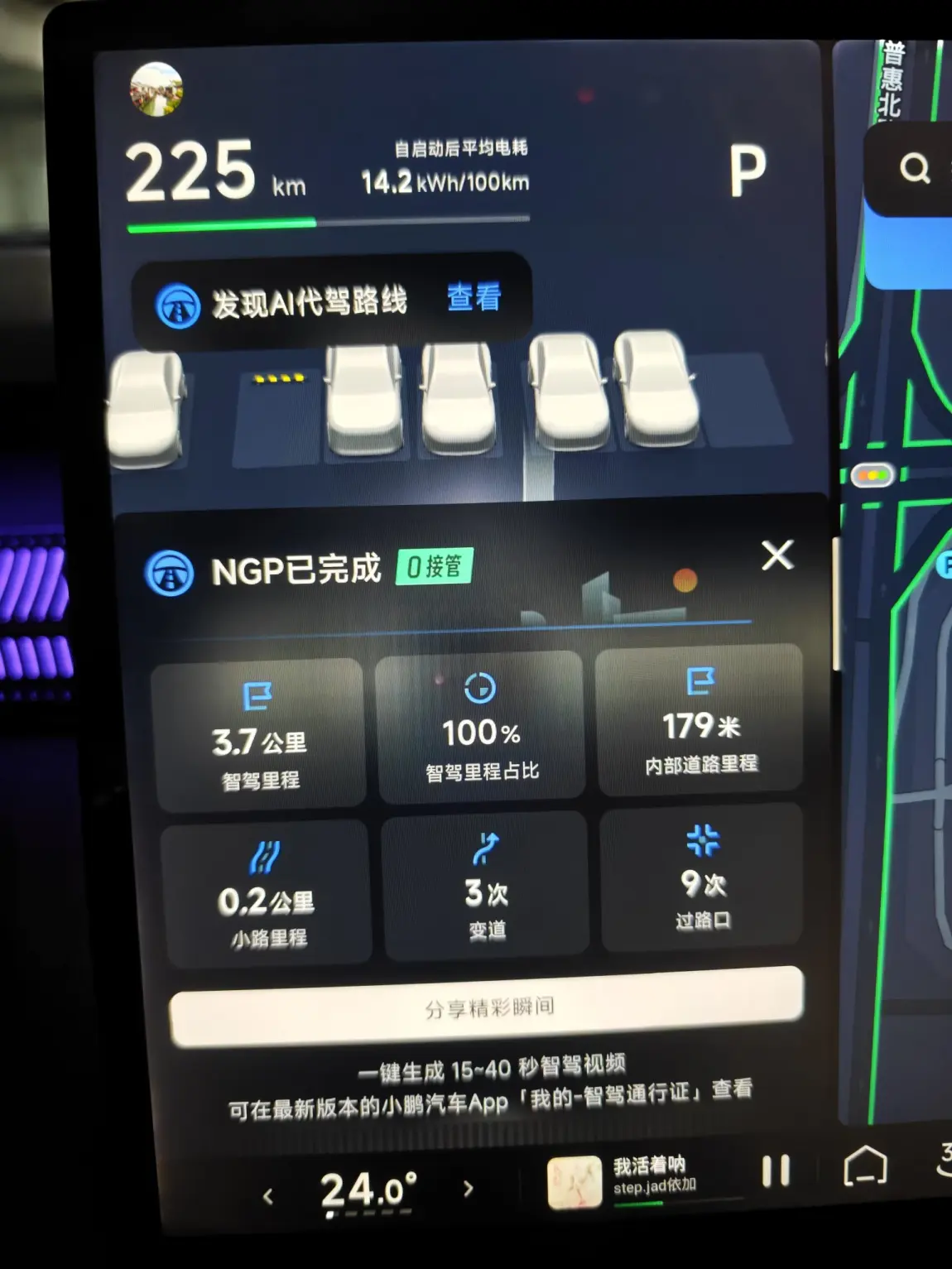 今天晚上散步完回家,智驾到家里地下车库车位,第一次全程无接管,以前到小区门口还要降级,这次拐弯进小区再抬杆后下坡,再自动驾驶到自己的车位,没有接管真爽啊!小鹏真是OK,越来越觉得小P给使用带来了巨大方便,平时我开车基本上都是智驾,自己基本不开全都交给小P,小P也不负我望,绝大部分时间能够自己开,而且越开我越对小P放心胆子就越大,有时候还故意让他无限接近旁车,试试他的驾驶极限,但有时还是有点恐慌,果断拉方向盘,以避免碰上去,所以在智驾时还要关注好旁边的车,随时接管呢,我相信迟早有一天,小P会彻底放手@智驾小助手 #我的智能时刻#