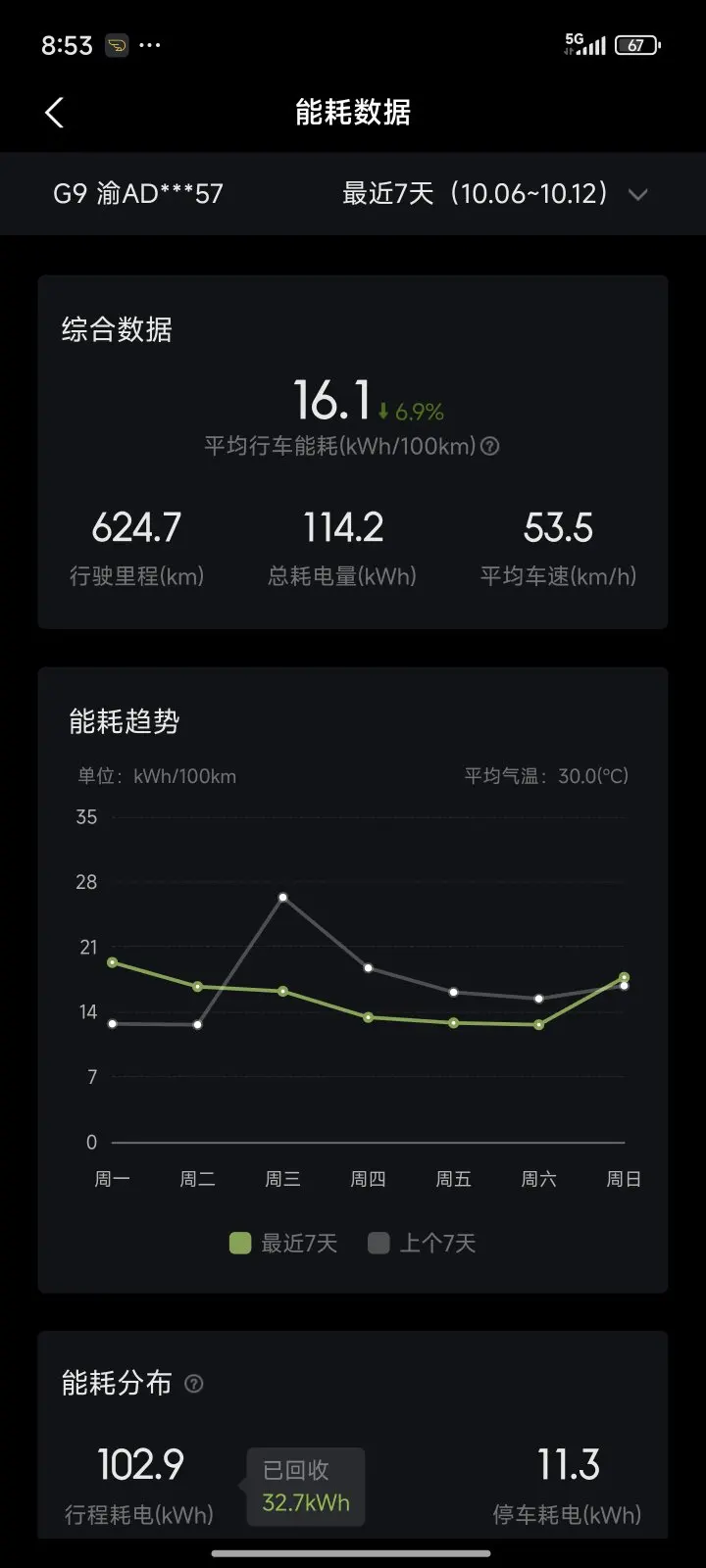 因为这周的数据包含了一部分高速,所以看起来能耗有些高