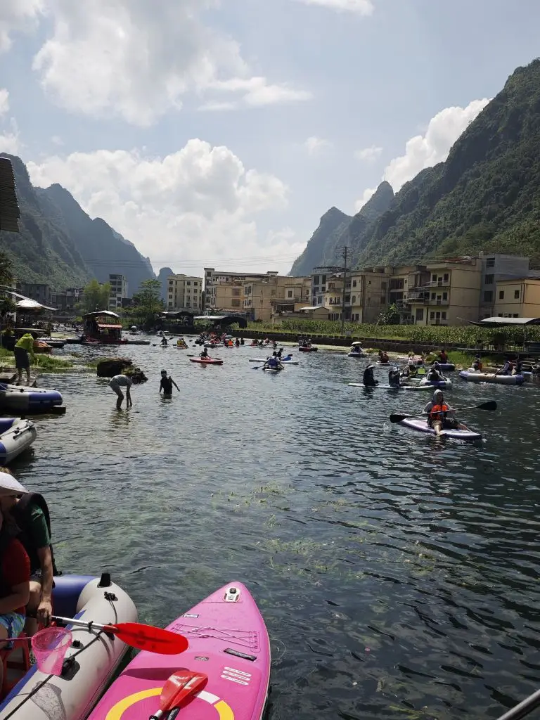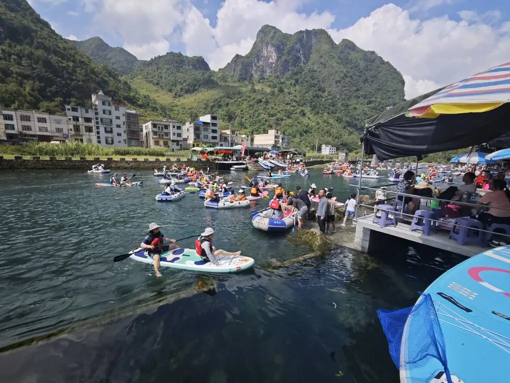柳州逛吃逛吃结束,本来想经过河池再去百色,看了一下,因为9月下旬暴雨,发洪水,百色的景区都关闭了,于是就到了河池。有一条特别经典的自驾路线,经过天坑,海菜花基地,好几个天窗,好多景点还都是免费的,推荐去一下九顿天窗那里,是澄江的上游发源地,水蛭是真的清,玩儿浆板租金是30元每小时起,可以两个人用一个桨板,真的是太便宜,停车是10元不限时。胆大的我,第二次下河游泳,这一次真的是惊险,跟着桨板到了河中央才下水,一下去发现水深见底,目测超过了10米。。。心里倒吸了一口凉气,有点过于自信了,还没有穿那个救生背心,游了十几米,赶紧抓着浆板停了。