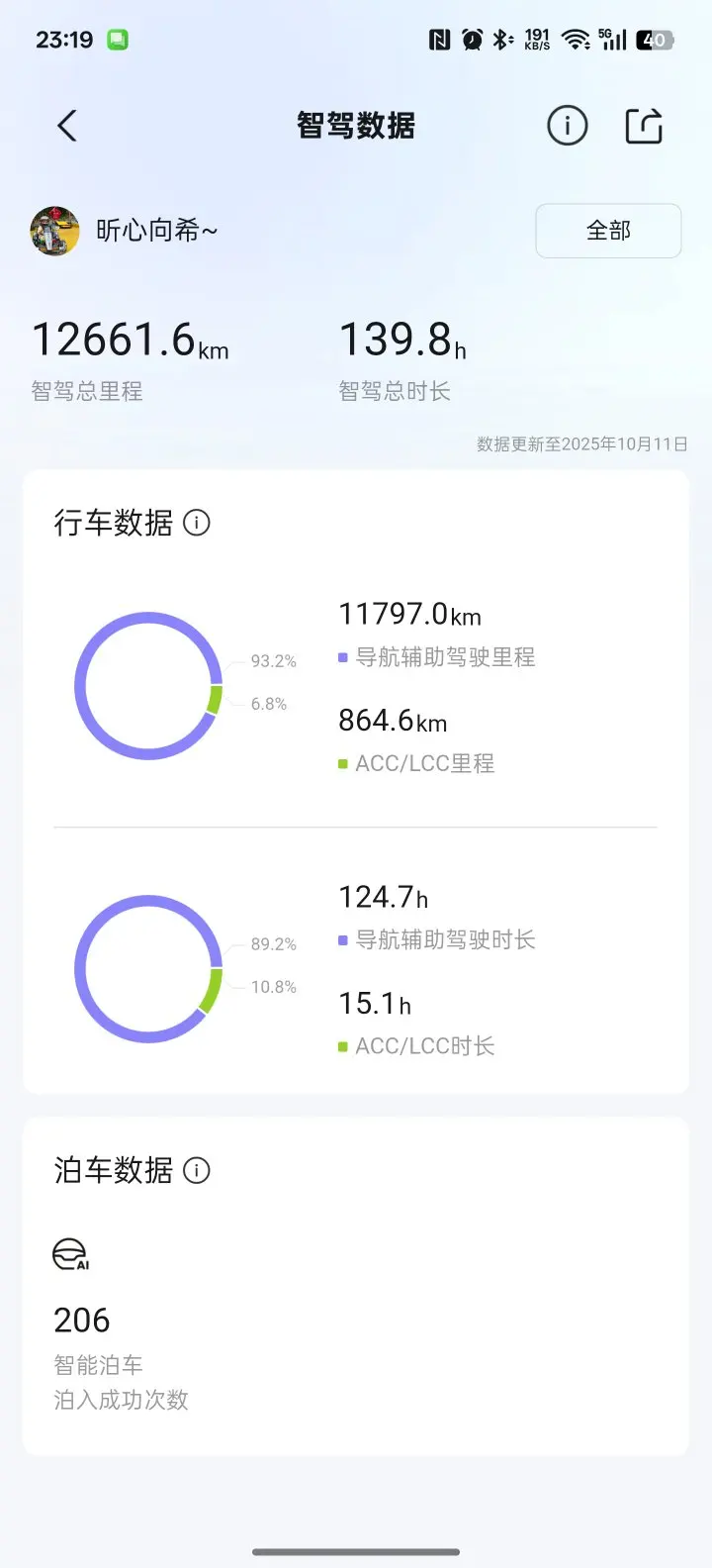 我的总智驾里程也来到12661.6km,占总里程比接近50%,智驾总时长接近140小时!
