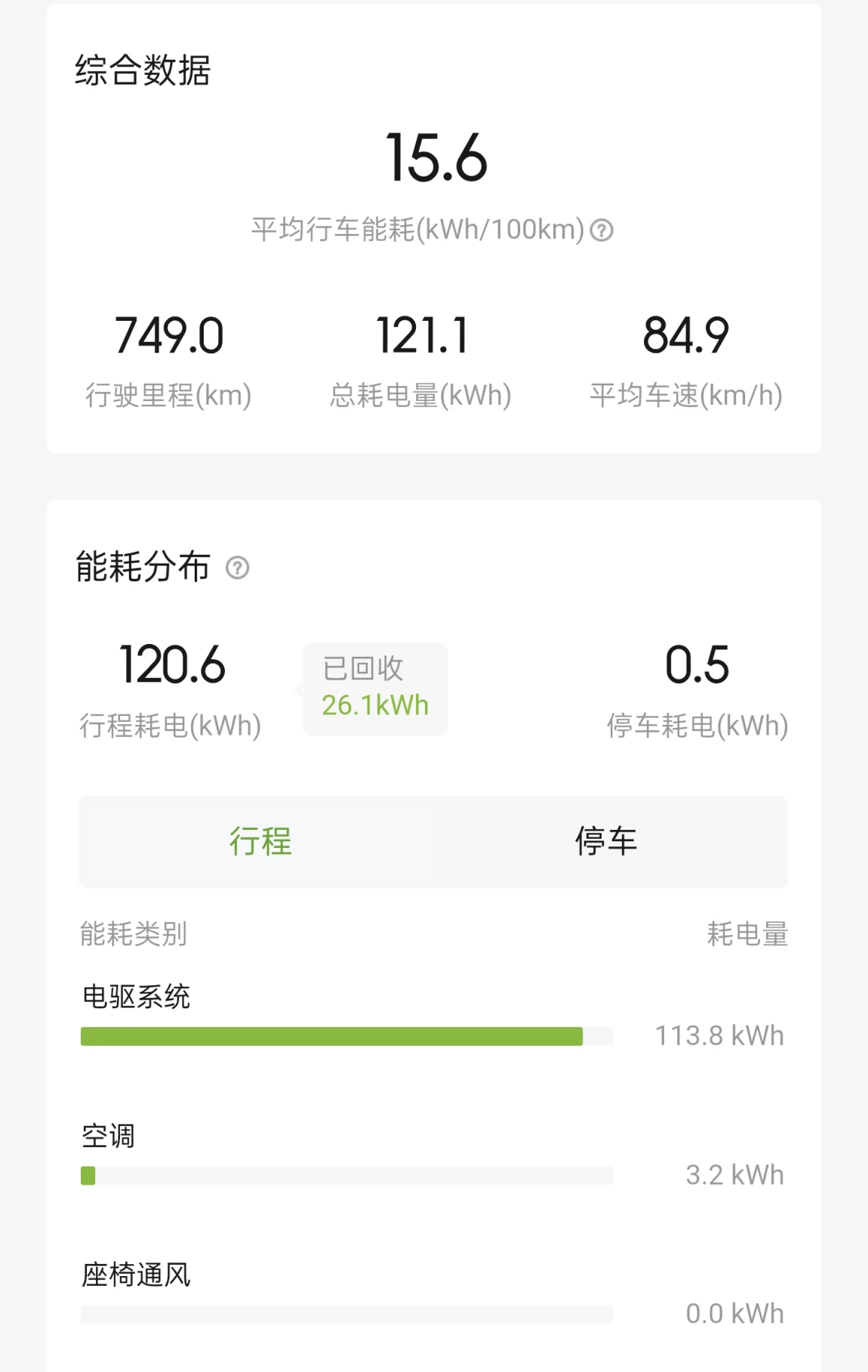 👉🏻最终全程的能耗为15.6kwh/100km,相对于14.5kwh/100km的wltp标准能耗,换算wltp续航达成率为92.9%!