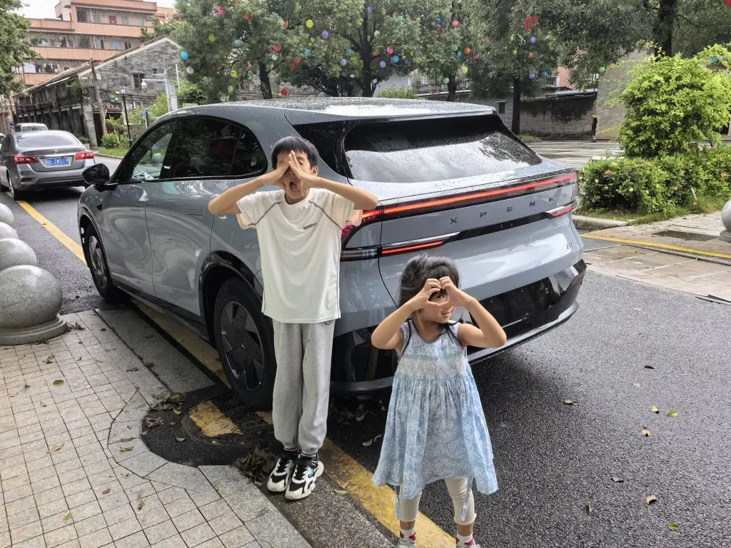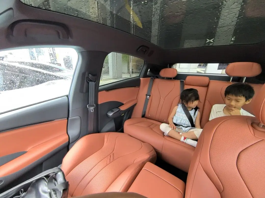 接下来是空间,也就是家人的使用空间。提车回到家当天娃娃们已经迫不及待要下来观摩,激动的心颤抖的手,坐上爱车后爱不惜手。尽管我跟他们强调说新车有点甲醛味,不要待太久,让我用场景码新车除味功能(具体可搜索鹏友圈,里面有提到,其实就是开几个小时空调闷几个小时,反复操作,稍微费电来去味)散散味道,但是娃娃们依然已经开始享受“你好小P打开后排屏”,然后在车内后座前座后备箱爬来爬去乐此不疲。