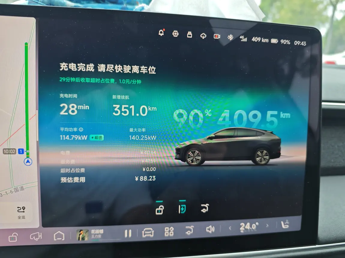 #满电黄金周,山河任我游# @鹏友俱乐部 @充电小助手 十一开着小鹏G6干了好多事,充满电参加同学的婚礼,在村里吃的一条龙流水席,见了好长时间没见的同学,看到精彩纷呈的烟花,2日回的河南老家。路上下高速就有小鹏充电桩,叠加66度免服务费电卡,充的很快,50多度电才40块钱,真的很划算,希望小鹏以后多多有这样的活动!然而路上被追尾了,不过还能开,一直到节后才去送修,店里服务也很好!
