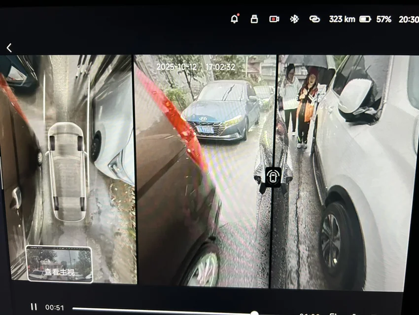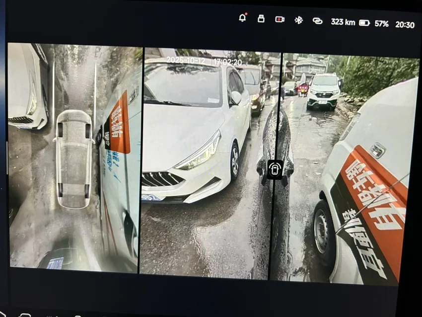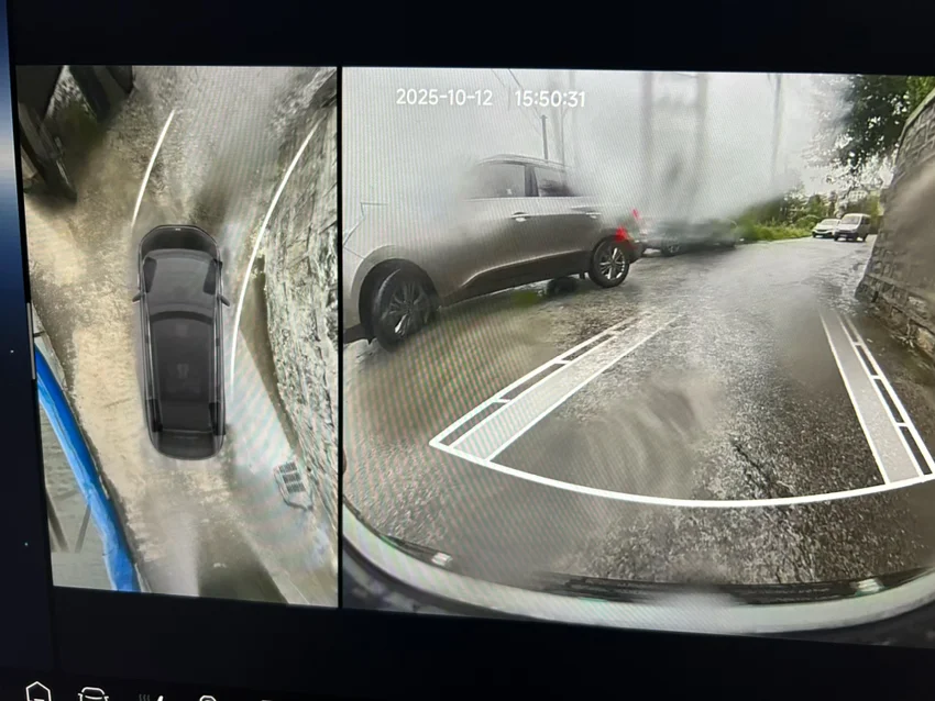 穿过狭窄的村庄道路时,一旁停满了车,后视镜几乎要擦着而过。我点出360,屏幕上清晰地显示出每一个死角。轮胎精准地压着最安全的轨迹,缓缓前行,顺利通过。如果是自己开,真是不敢开,生怕碰到旁边的人和车。