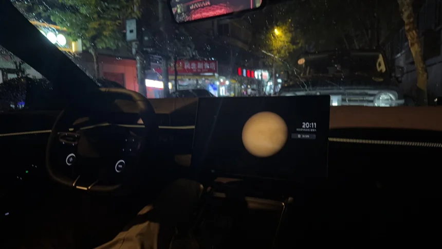 当初选车时,一眼就被它的设计戳中。轿跑式低趴造型搭配流畅的溜背线条,光剑贯穿式灯带点亮瞬间科技感拉满,我选的新月银配色在阳光下会泛出细腻光泽,开在路上总被路人多看几眼,等红灯时甚至有车主摇窗问车型,虚荣心直接拉满。无框车门和电动吸合门更是点睛之笔,每次开关门都觉得仪式感十足,朋友坐我的车必夸“这颜值太洋气了”。
