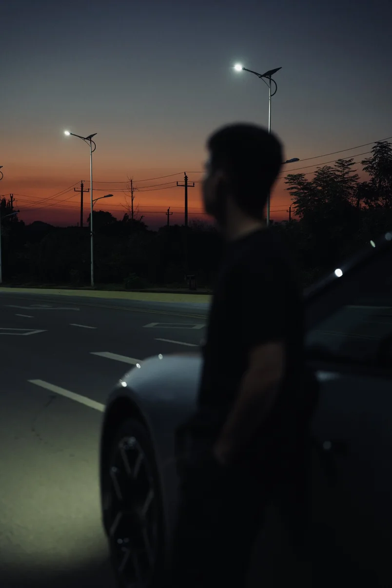 最后选了一个非常美的日落,让朋友拍摄了一组照片📷直接出片,肌肉线条,复古未来感太帅了。