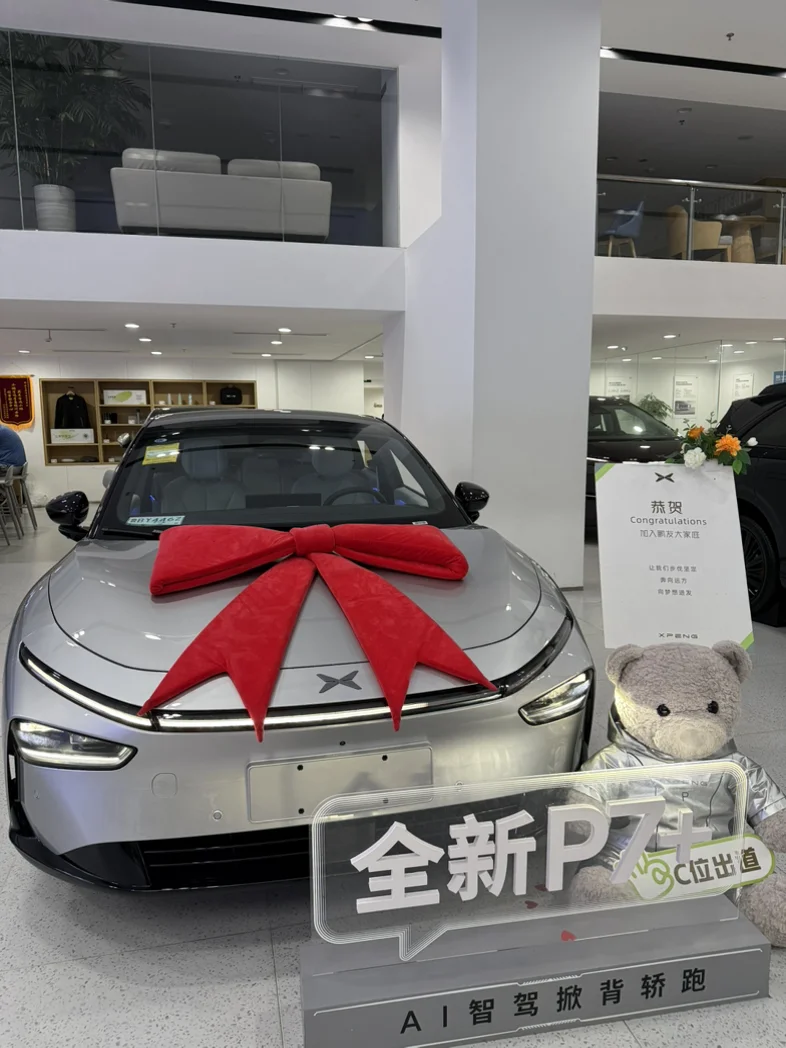 P7➕提车啦,你好鹏友。对比了很个车型最终是L60跟P7加,P7加不管是颜值还是空间都很吸引我,尤其是银色,空间也很大以后后排小朋友可以随便活动。提车交付的工作人员也很细心,每个步骤都很认真。感谢我的销售#我的提車作業#