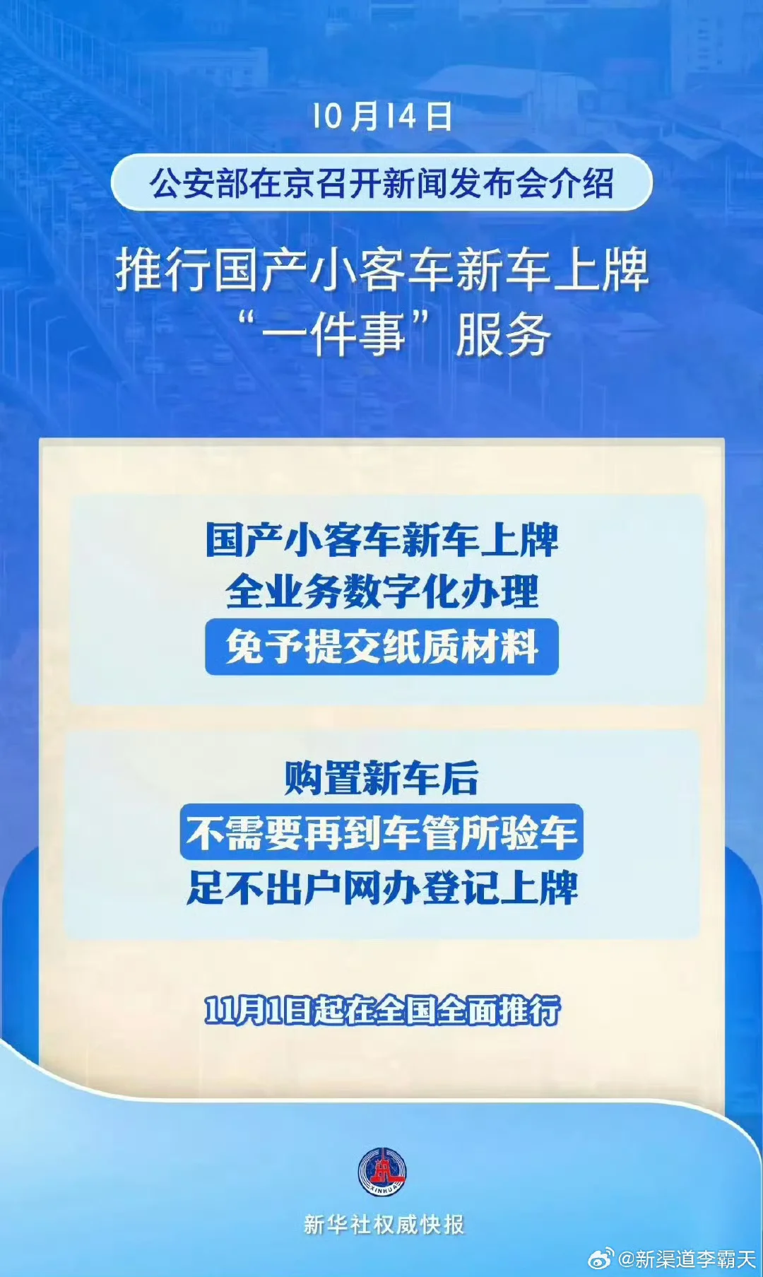 这是好事儿,方便了购买新车后上牌的服务了