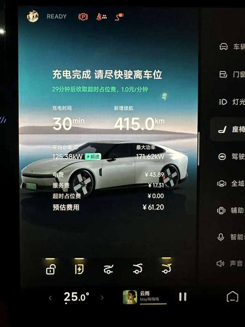这次出门特意测试了充电速度,在服务区吃个简餐的功夫,从20%充到90%只用了大概30分钟!速度超乎预期。再加上扎实的续航表现,规划行程时心里特别有底,完全没有“电量焦虑症”了。