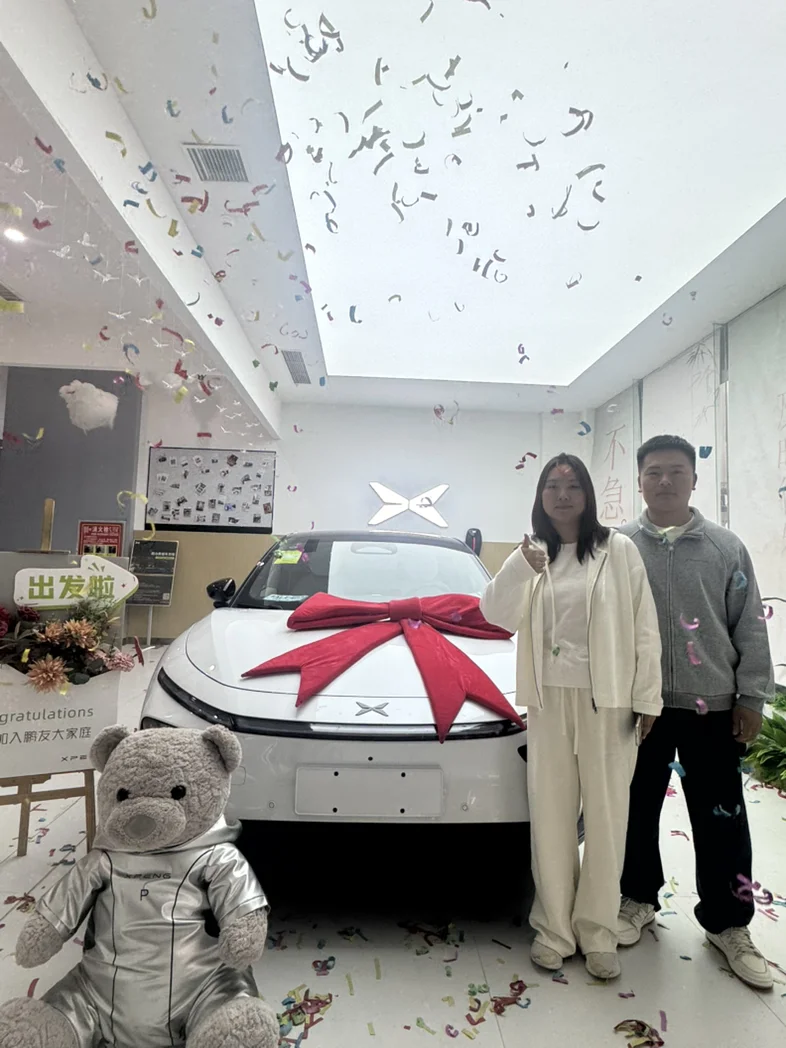 #我的提车作业# 心心念念的p7+,第一眼看到这个白色悬浮车顶就非常喜欢,太帅了,内饰家里想选黑色但是我就喜欢白色,很好看😍,就是有点儿不耐脏,交付中心离家300公里,迫不及待想体验智驾,小蓝灯一亮,哈哈哈🤣,高速电耗15左右,很牛的电控。天幕很帅,空间贼大。闺女特别喜欢小p,一直和小p聊不停。就是小朋友把我的门板用笔给画了😔,销售耐心的给我推荐了清洗剂。非常开心