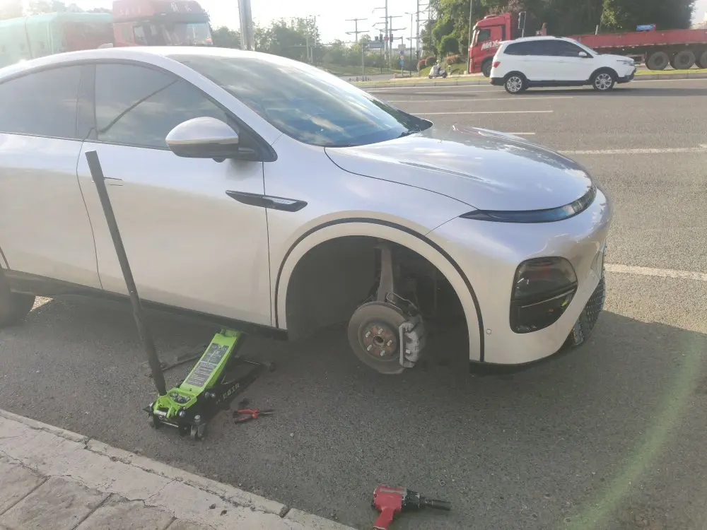 小鹏服务真好,轮胎遭钉子了,火速赶过来救援补胎。