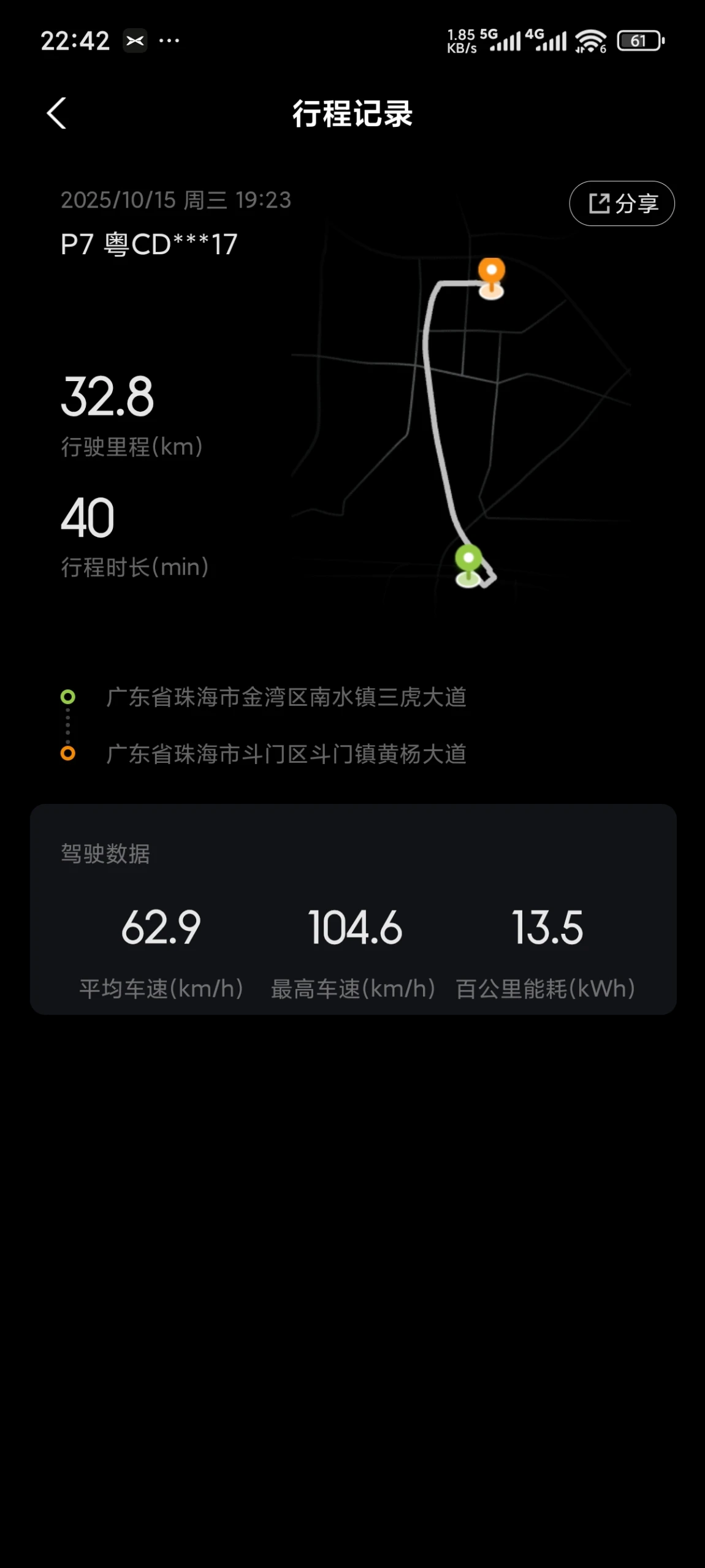 #我的绿色足迹# 珠海最近的天气真的很好看,有秋天的黄昏,但是没有秋天雾蒙蒙的感觉。但能拍车的地方越来越少了,下班出门拍照,趁着还没上牌,多拍几张。赶在日落前飞速抓拍了几张,当做提车纪念。高速能耗14-15,城市快速路程耗耗是12至13,75度的电池相当耐用,充电也比较快,120瓦的快充桩,一半的时间都能拉满。#小鹏汽车#@鹏友俱乐部 @鹏友爱公益