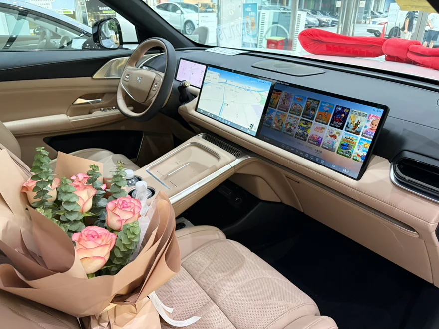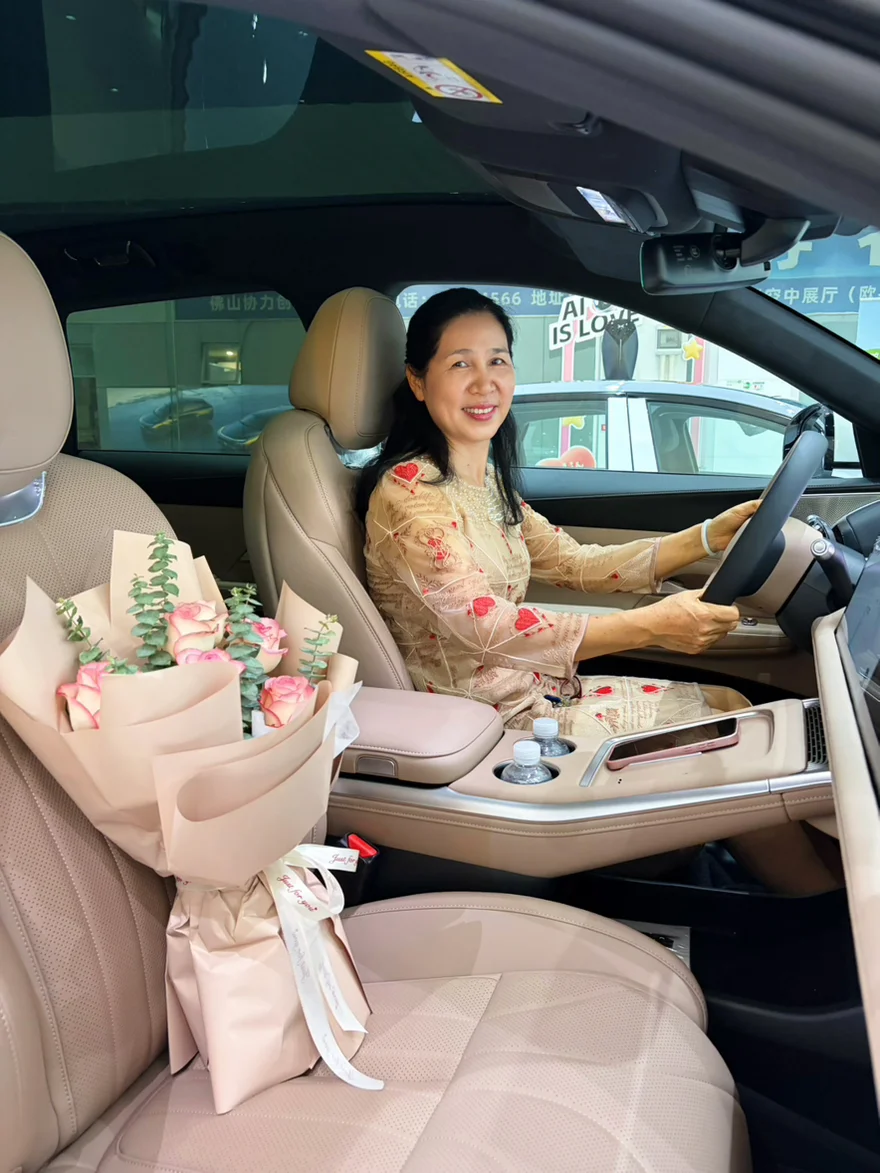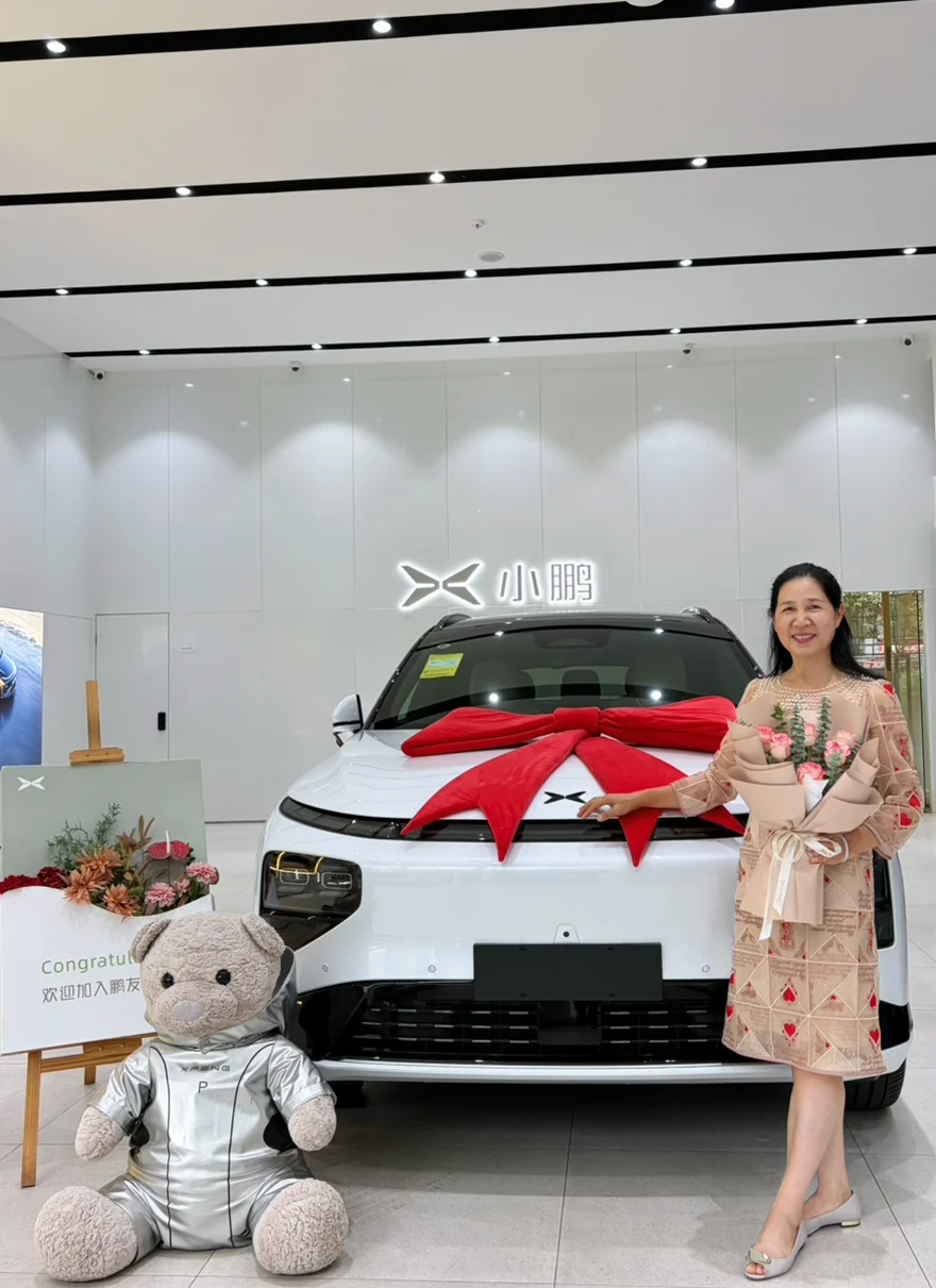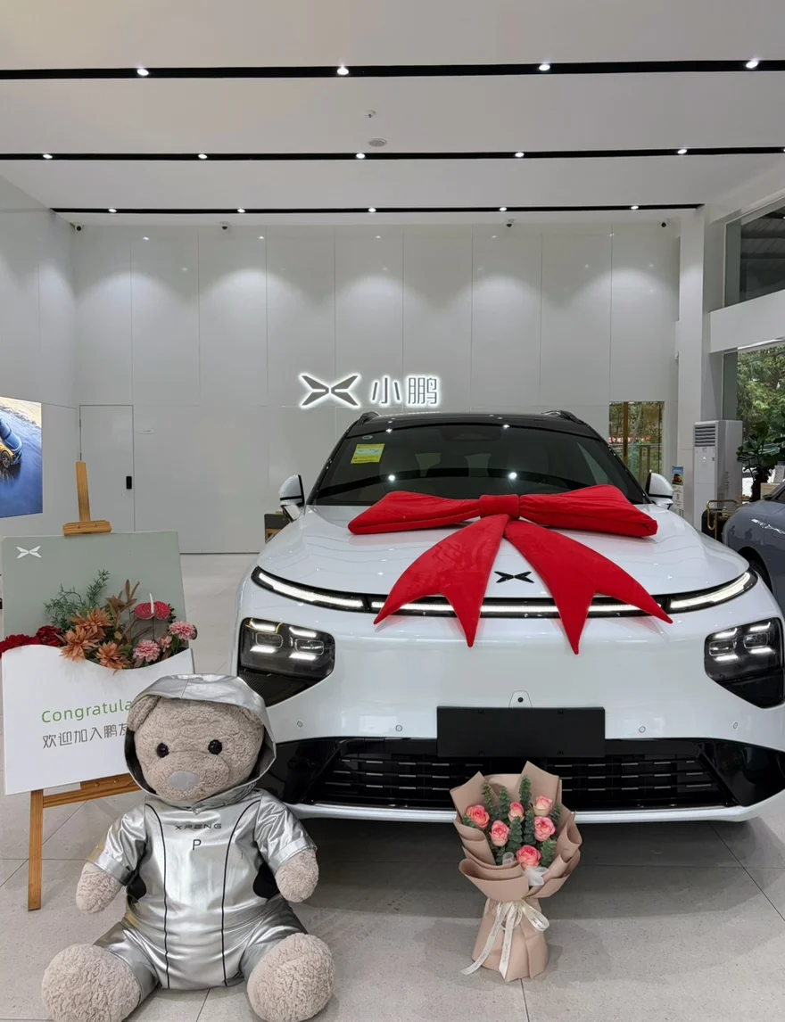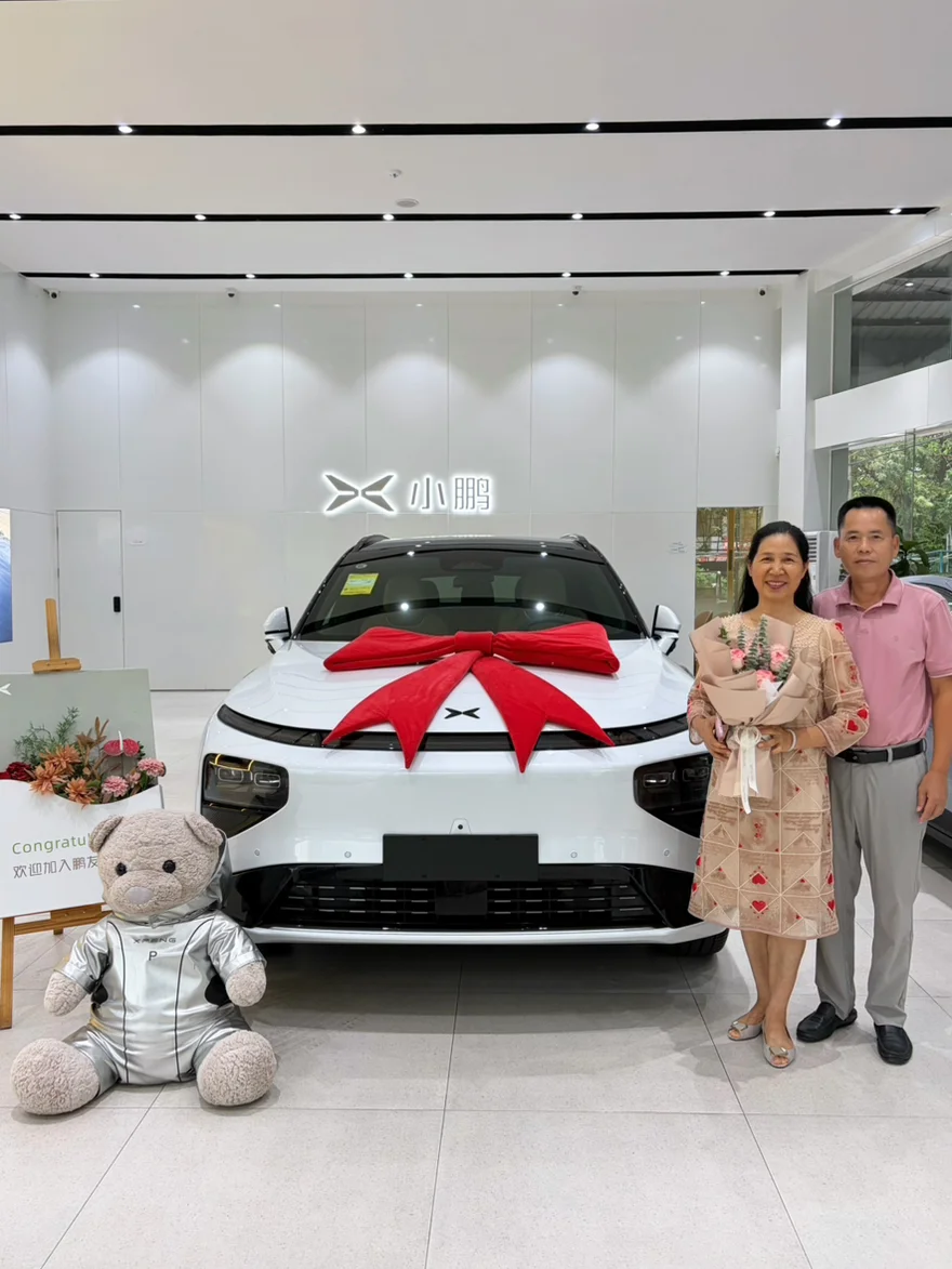 交付专员会全程对接,提供饮品和小零食,小朋友们看电车最开心了,有吃有喝还能去车上看动画片,等待期间不枯燥。核对资料后签名,流程简单便捷。然后验车,检查漆面,打开副驾看了下生产日期,测试了一下座椅通风/加热/按摩等功能,还有语音控制和360影像,最后核对了一下应急包、行车记录仪U盘等随车物品。另外交付专员会一对一讲解功能,讲得很细致,因为我自己也开电车,所以这个流程很快就结束了,我先试开,以后老爸不懂再问我😏。新车会赠送一束鲜花,一家人合影留念,还送小P熊玩偶,换了新手机刚好拍个美美的照片,哈哈。