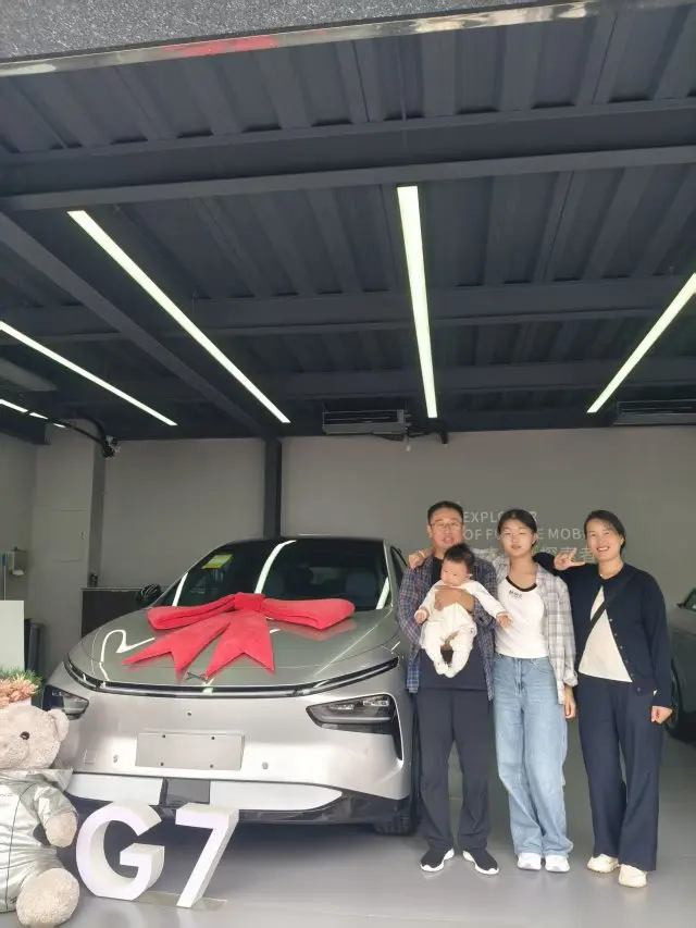一家四口的新“移动小家”报到!外银耐脏又大气,秘境蓝座舱像裹着温柔的云,往后的上学路、周末露营,都有G7稳稳守护 👨👩👧👦✨等了好久,终于带着全家提车啦!银色车身阳光下超亮眼,秘境蓝内饰孩子一坐就说“好舒服”,后排空间够俩娃撒欢,往后的每段旅程都甜滋滋,家的版图再添一员!外银是岁月沉淀的质感,秘境蓝是专属小家庭的温柔。从此四口人的欢声笑语,有了G7这个“移动包厢”,去哪都开心~喜提小鹏G7!外银酷飒,秘境蓝暖心,刚好装下一家四口的所有期待。往后的春游、秋游、日常通勤,就让这抹蓝白银,载着我们奔赴每段小美好~