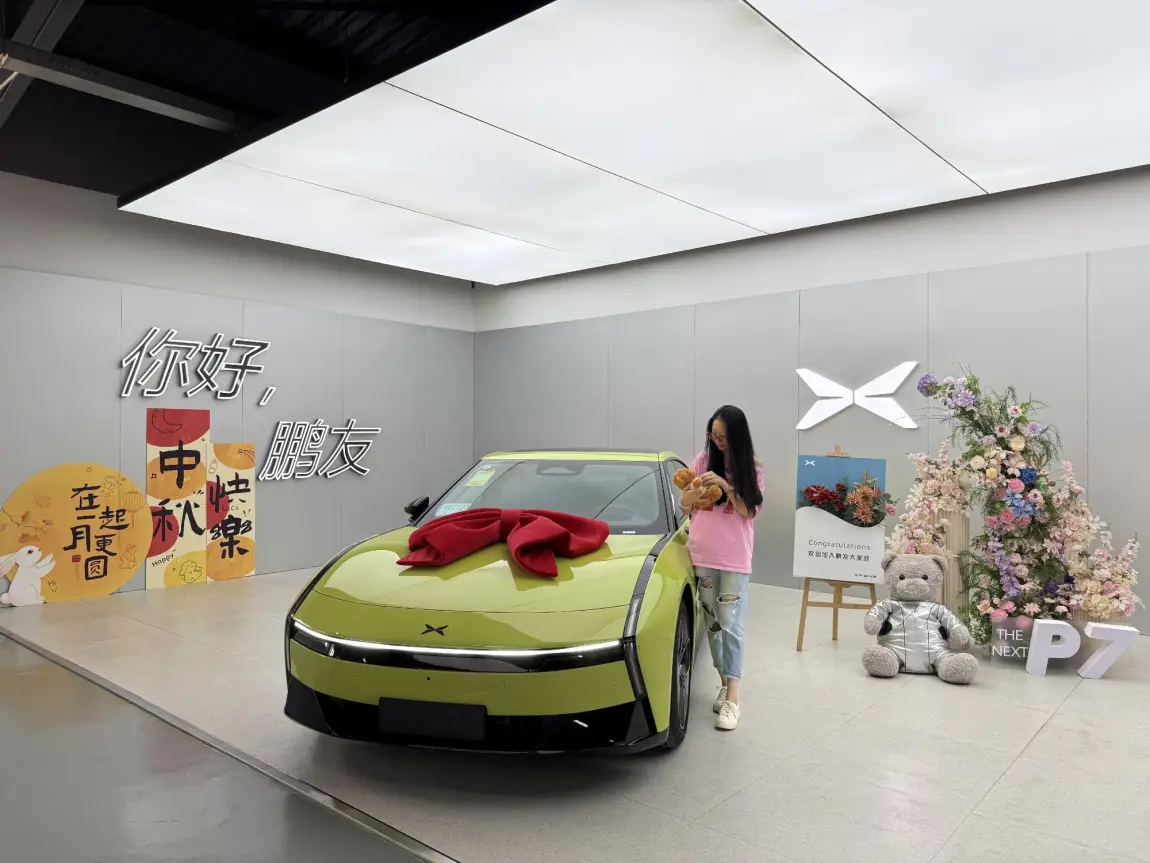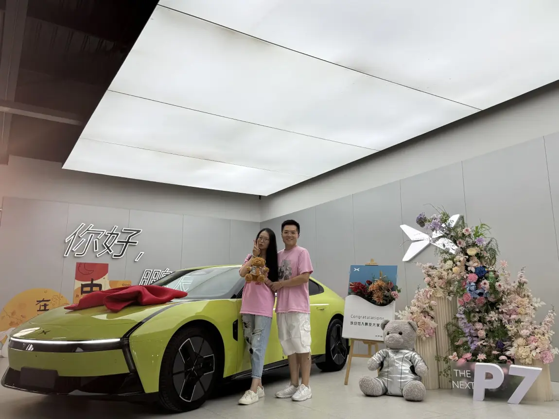 #分享交付美好时刻# 心念心念的小p7终于提车啦!而且在小鹏服务团队的帮助和提醒下挤进了上海补贴政策截止日期❤️闵行交付中西的律动黄(可明明是荧光绿)好少见。停到地库后,还遇到遛狗的邻居拍照,莫非要成为小区新闻❓