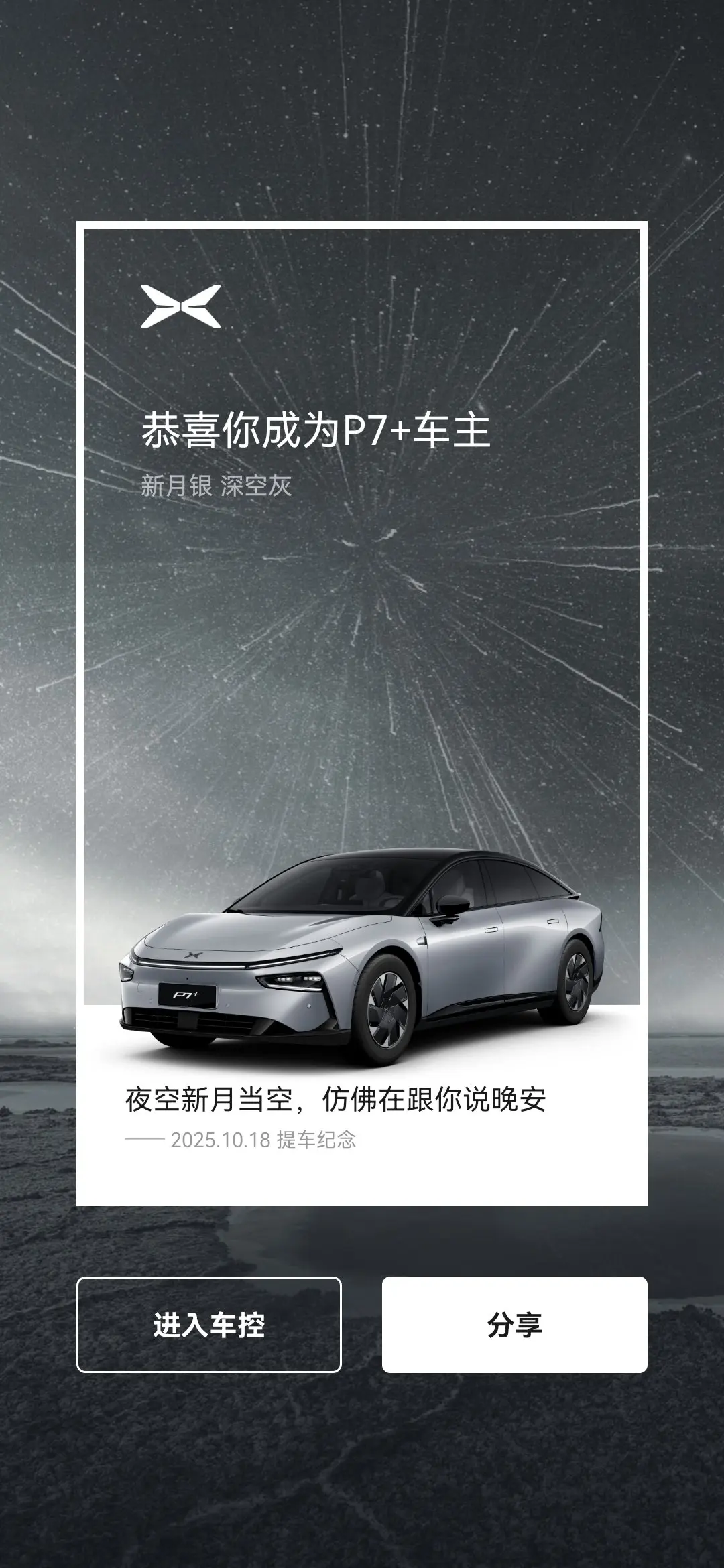 #我的提车作业# 帅就一个字!心心念念的小鹏P7+终于到手,正式加入“鹏友圈”感谢销售、交付中心每一位耐心、细心、贴心的工作人员,还管了中饭,贼拉好吃😁。提到手立马跑了50公里,底盘调教很舒服,让我和家人非常满意。