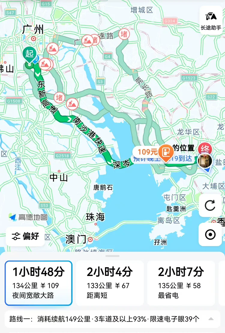 今天又是一次大湾区行程,从佛山到深圳,导航显示总共134公里,经过深中通道。从佛山刚上到高速开始,我就打开了NGP。