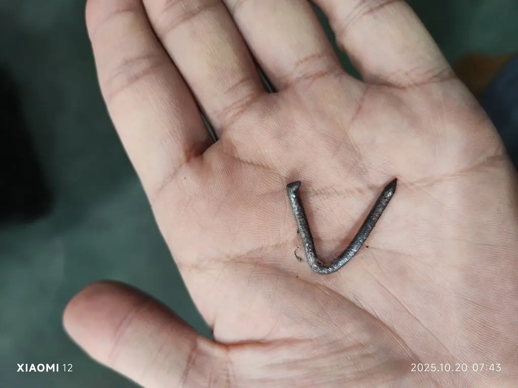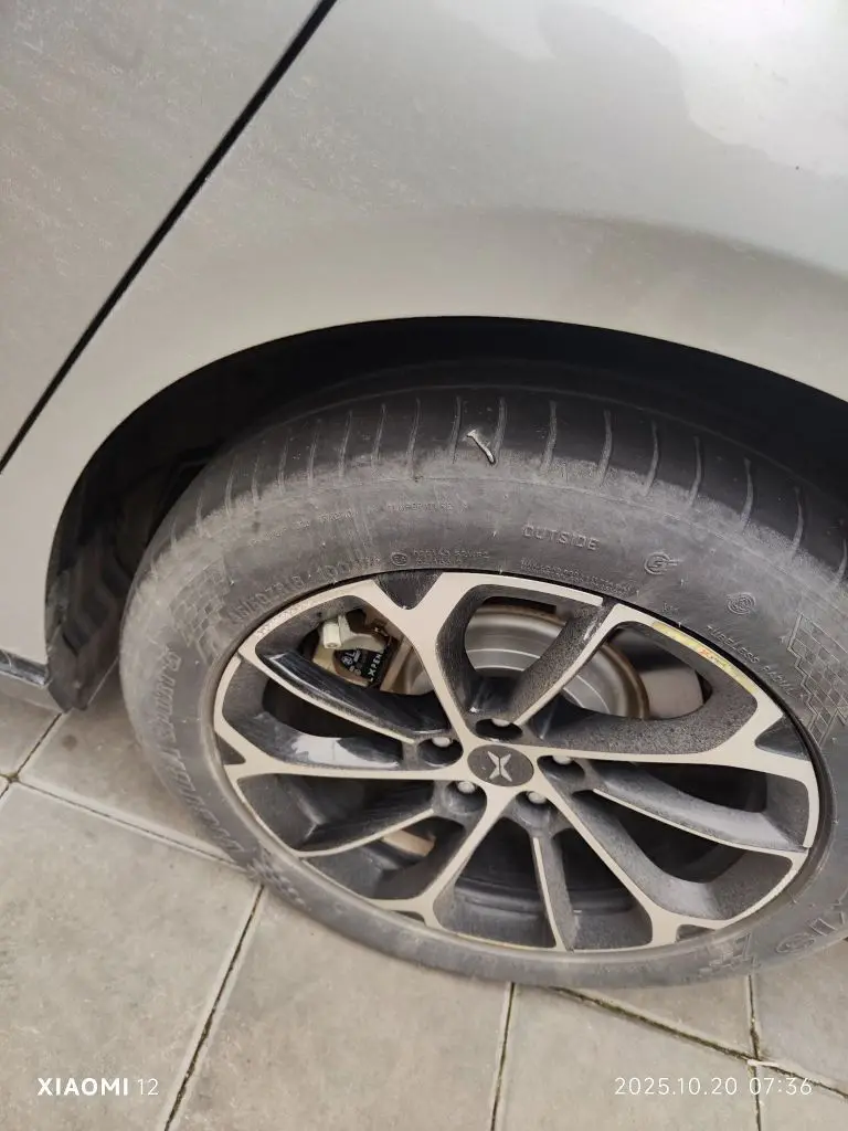 这胎扎得心痛,师傅让我换轮胎,赶着上班,先上蘑菇钉再说。