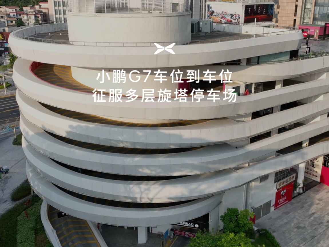 小鹏G7车位到车位,征服多层旋塔停车场