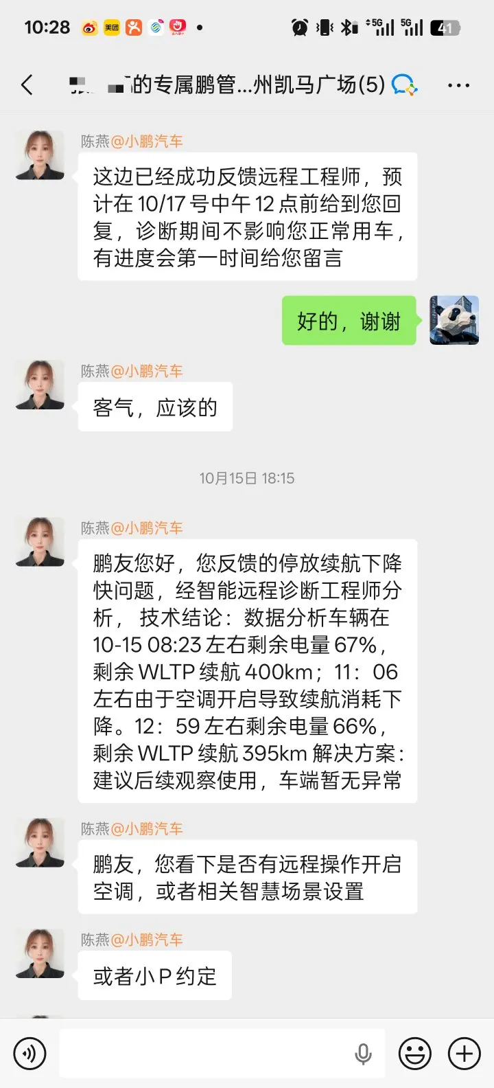新P7提车到现在,也有一个多月了。小鹏的MOT服务真心挺不错的。专属管家服务也享受了很多次,智能远程诊断也尝试过一次了。first blood也试了下维修保养。专属管家支持,自从提车以后,专属管家就在微信群里答疑解惑,我遇到用车的所有问题,都可以发在群里,管家都会及时解决回复。智能远程诊断,上次遇到骤然掉电量,赶紧联系了管家,管家让我上传用车日志,让工程师在后台检测。很快就有了结果。维修保养,不小心和别的车蹭了一下,车上蹭到了白色漆,到了店里,维修师傅也是妙手回春,就恢复了原貌。#小鹏汽车、#小鹏智能服务、#小鹏MOT服务