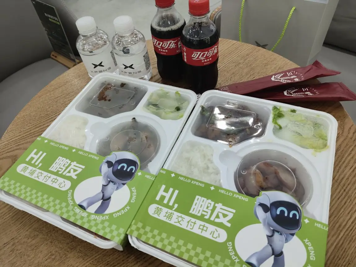交车仪式太有仪式感了!工作人员提前布置了交车区,还送了鲜花和太空熊,特别贴心,以后也是成为鹏友啦。中午还安排了午餐,虽然只是盒饭但感觉很温暖。最棒的是功能讲解环节,专员一对一教用车辆功能,对新手超级友好!