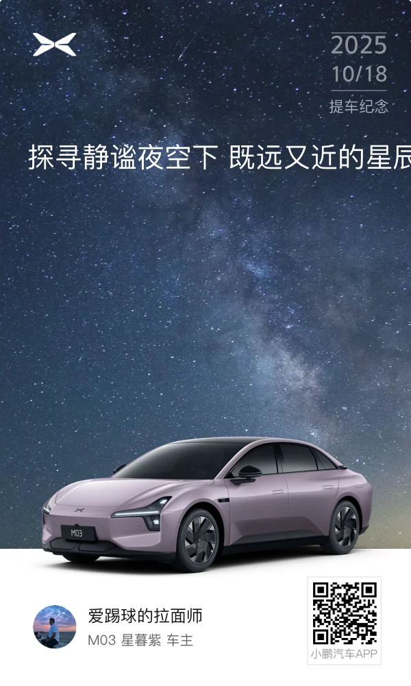 圆梦时刻!我的小鹏M03终于到家了✨ 流线型车身颜值戳心,掀背尾门超能装。未来的路,就由你陪我探索啦!