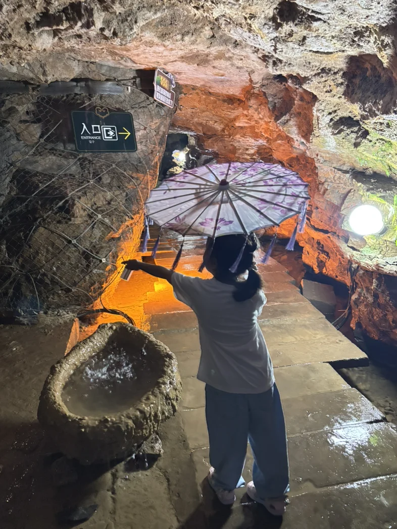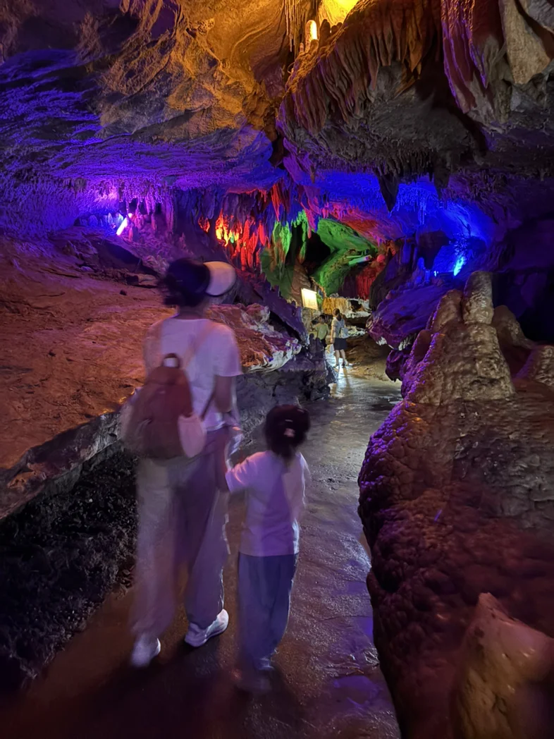 旁边就有个溶洞,进去参观参观,溶洞真的是避暑好地方,冰冰凉凉,适合纳凉解暑,很长一条隧道一样,走了十几分钟才绕出来
