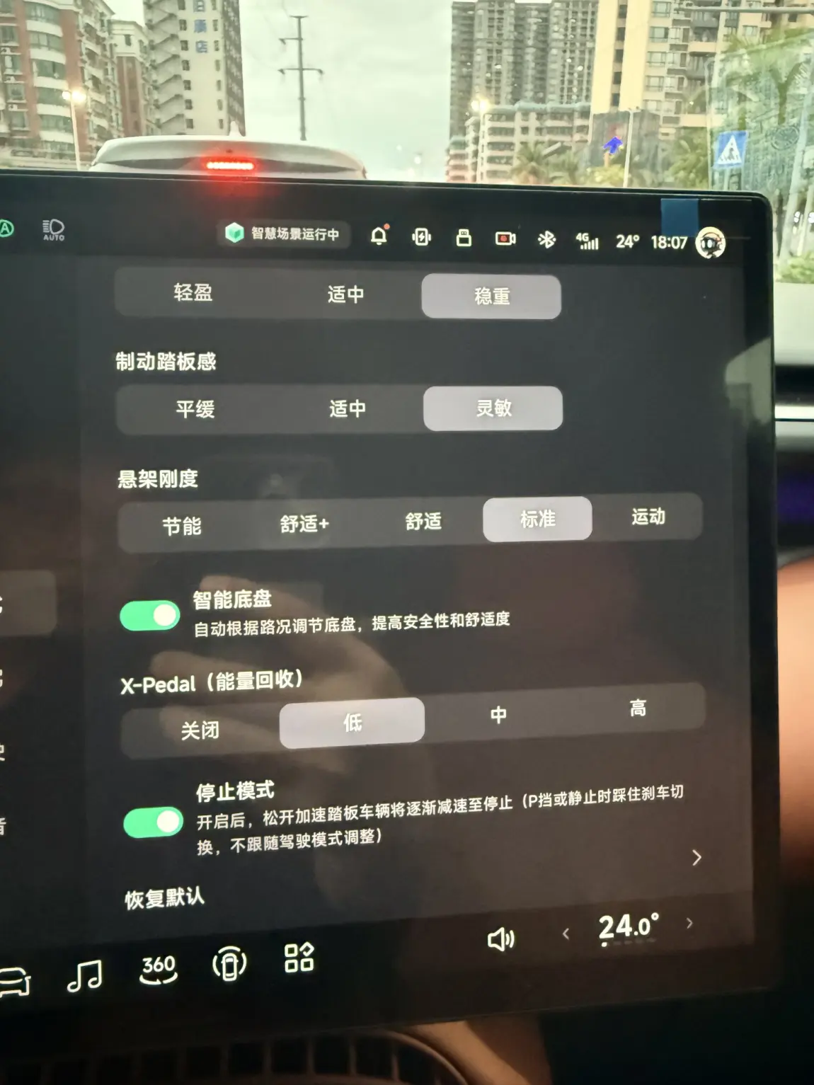尤其是开慢车的时候,用了我设置的这样情况下,完全不用踩刹车,而且不会头晕,它就是,刚刚好那种,你懂吧?会溜车,不会刹的很严重,导致坐的人头晕,然后紧急和需要刹车情况下,该踩刹车就踩刹车,我认为,这既保持了原本的开车模式,又能完美享受单踏板的便捷性,这就是我开了一个星期以来感受最深的。