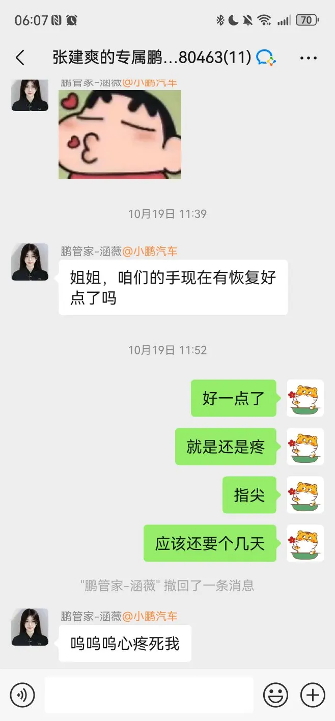 提车四个月了 说说我近期发生的一个事情等红灯的时候 我把车窗打开了 一不小心夹到手指头了,然后能我以为是我自己的防夹功能没有打开 也就不以为然。几天之后我联系了小鹏客服。第一时间告知了这个事情之后,他们在2分钟之内给我打来了慰问电话,问我的情况。很贴心的送上了安慰。防夹功能反反复复测试,它是根据硬物以及力度 来标定的。手指头压到了没能及时自动下降车窗。这里特别给涵薇客服点赞 送上了慰问礼品。小鹏的售后服务是真的很棒呀