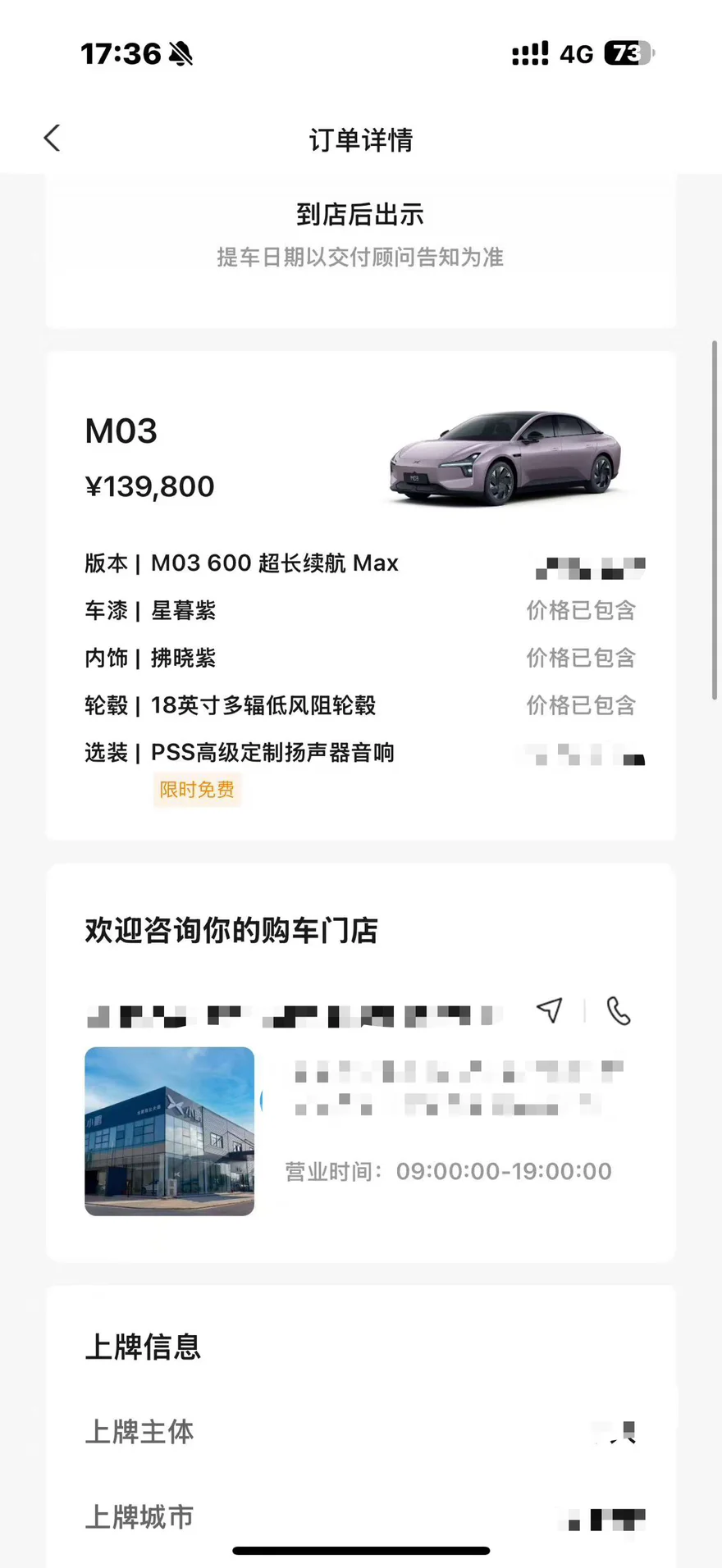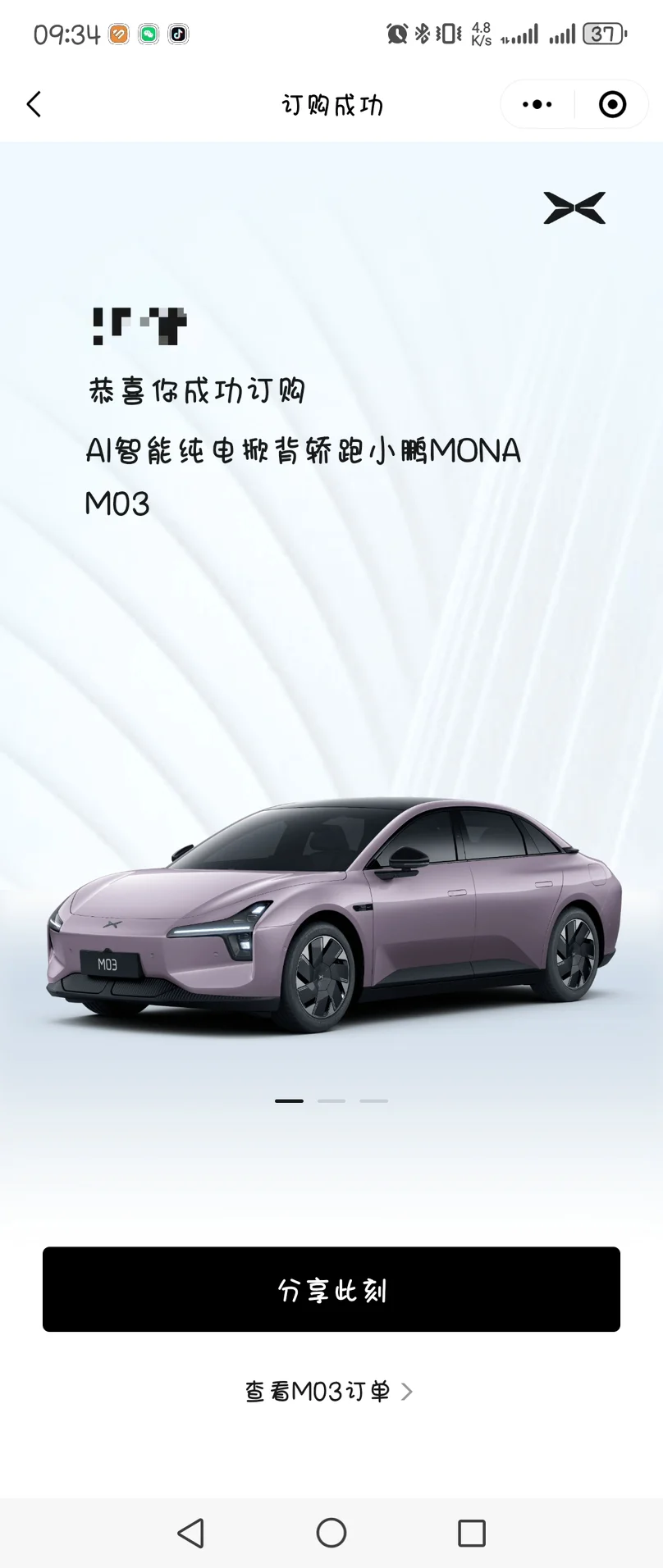 今天是提车的第十天,终于给我的小紫紫贴上了好看的车衣。终于拥有了一辆从看车,考虑配色和内饰,下定,提车,都是依照自己的喜好来的!由于是油换电,第一次上路竟然能让我这个 13 年的老司机紧张到一身汗!不过话说回来长这么大还没对谁一见钟情过,但是小鹏 m03 竟然让我无法自拔,开起来也是非常的舒适!就是智驾还不敢用,只敢让它自动泊车!慢慢的再来分享自己的一些开车的感觉和体会吧,总会一句话,喜欢,喜欢,特别喜欢😜