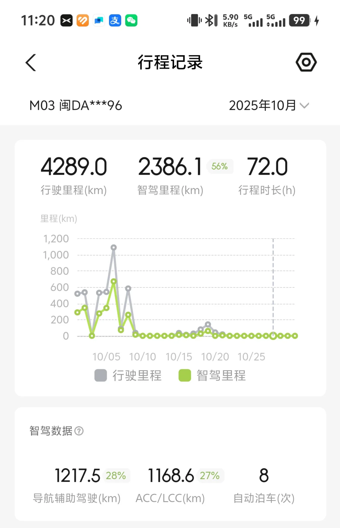 从用车数据看,这个月行驶里程可观,智驾功能也频繁使用,为旅途增添了不少轻松与便捷。充电方面,总充电量、充电时间等数据也清晰记录了爱车的“能量补给”情况。能耗表现也较为稳定,助力我顺利完成一次次出行。这个10月,爱车不仅是出行载体,更见证了我与美景、与家人的美好时光。
