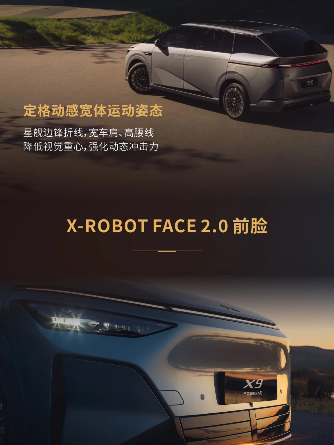 小鹏X9超级增程,全新星舰姿态,让爱的座驾更"圆满"延续小鹏汇天「陆地航母」的设计哲学,打造小鹏第二代「陆地星舰」全球首创OneBox豪华宽体运动造型,奢享动感空间兼具美学与实用性,每一处设计皆为极致续航服务