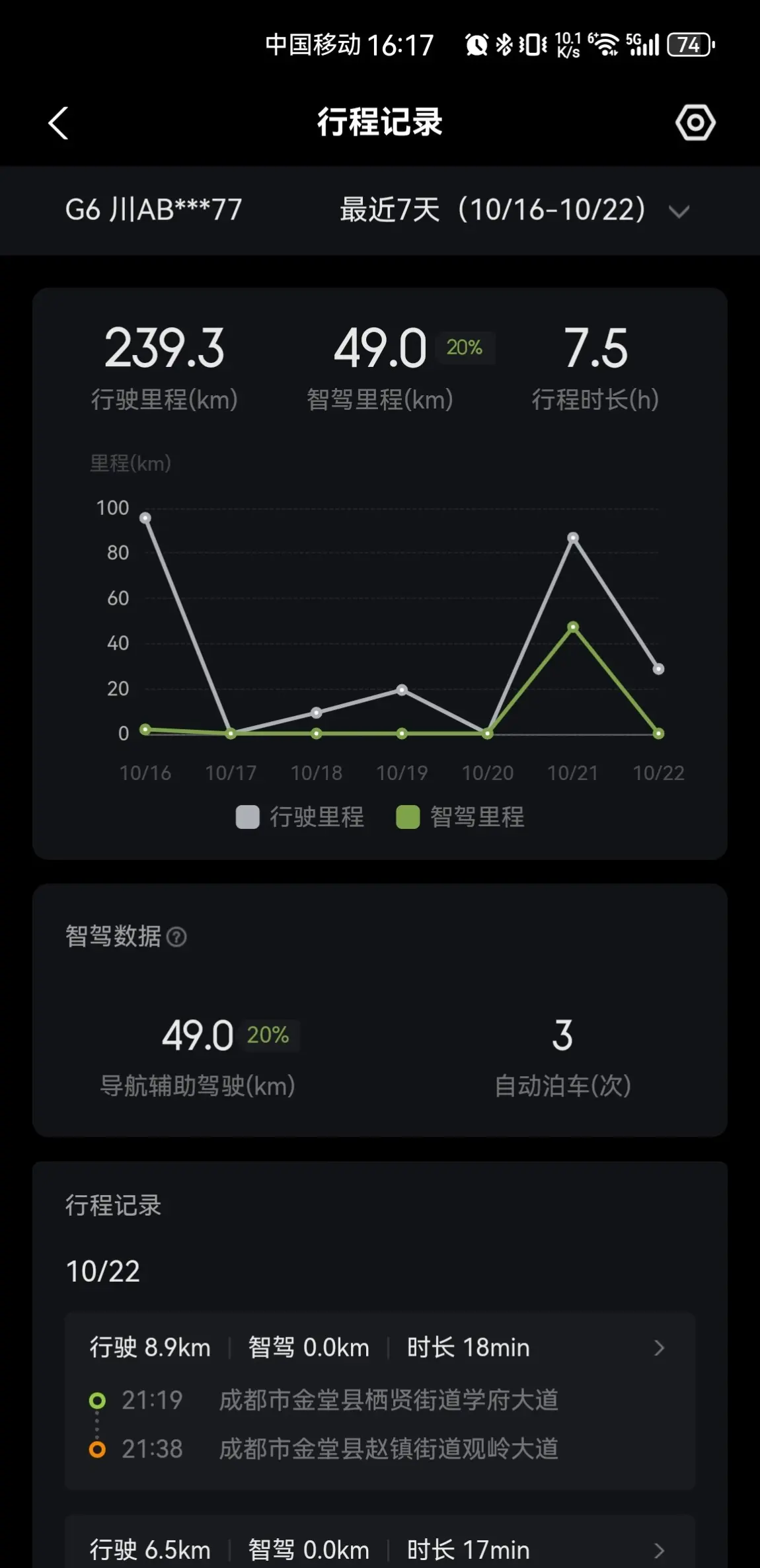 不知不觉我和我的小鹏鸡柳已经合作了一年了,10月份国庆假期冲着高速免费带着小朋友去200公里外找他的妈妈过国庆, 有了电车以后,不管是驾驶员还是乘客坐车舒适度提高了很多。小朋友也不会吵闹,有电视看。而且小鹏的这个能耗不得不说真的是厉害。加上现在气温下降以后基本上不怎么开空调感觉完全进入了小鹏能耗的舒适区。城区里边开基本上就是10左右。我的老款小鹏g6充满电显示470的续航。现在这个天气环境在成都地区随便能开到500以上。哪怕是高速顶着120的最高限速一直开也能开400。这个续航能力对我来说简直完全够用了。虽然老六没有城区智驾,但是现在用惯了他的智能泊车,作为老司机的我也基本上到点就让小鹏自己来停,真正的方便很多。一些比较窄的停车位也可以离车泊入。不会再遇到以前油车那种停完车下不来的尴尬情况了