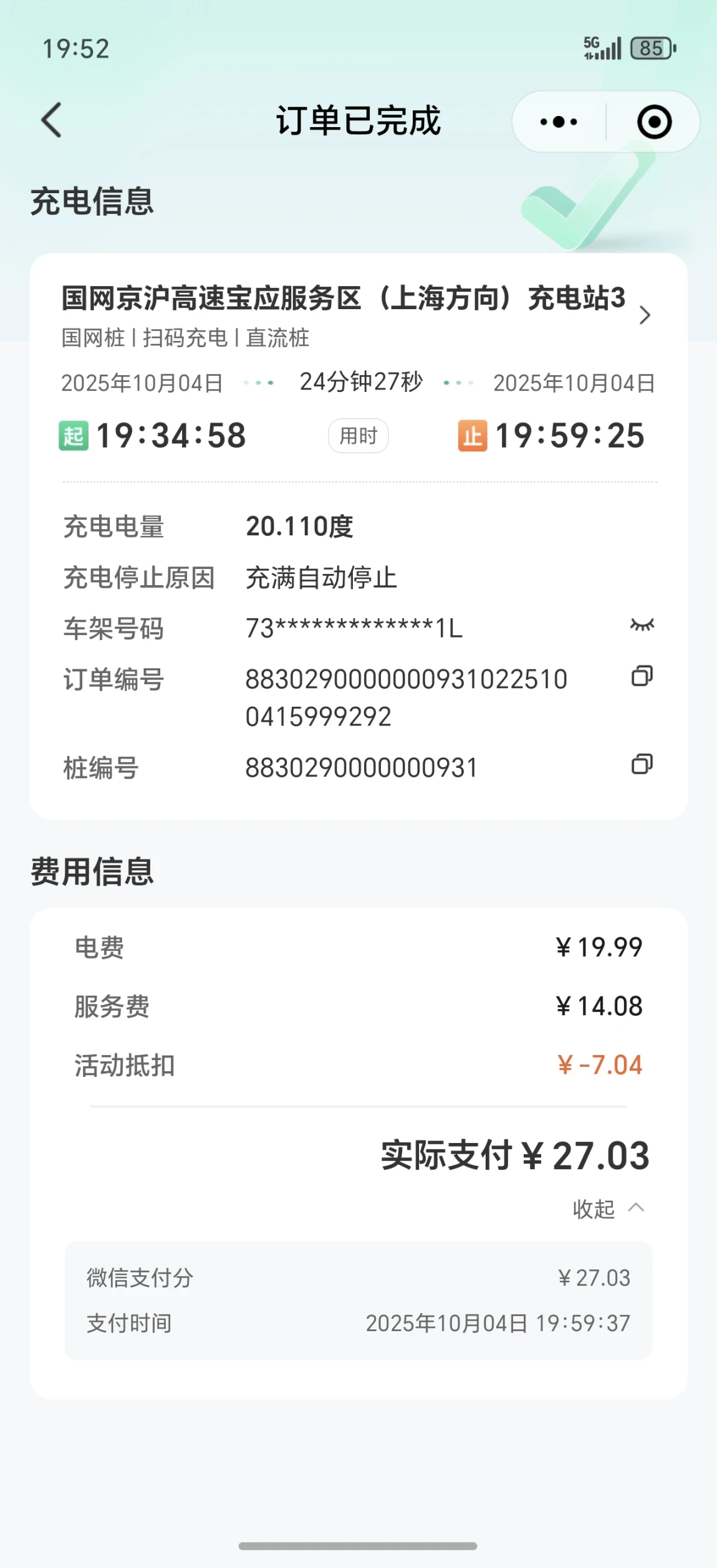 10月4日白天:44.46元、26.33元、27.03元-这是在青岛游玩期间以及返程路上的多次补电。这也体现了M03快充的便利,基本是利用吃饭、休息的碎片时间“闪充”,每次十分钟到半小时,花费不过一顿快餐钱,全程下来很方便。