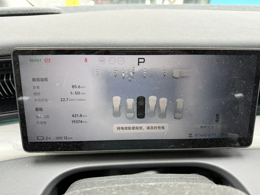 去石家庄开会,开着x9一路125ngp狂奔,421公里一口气到目的地就2%电量了。虽然惊险也还是顺利到了。温度降到10度左右,需要暖风的季节果然续航比夏天少了几十公里。