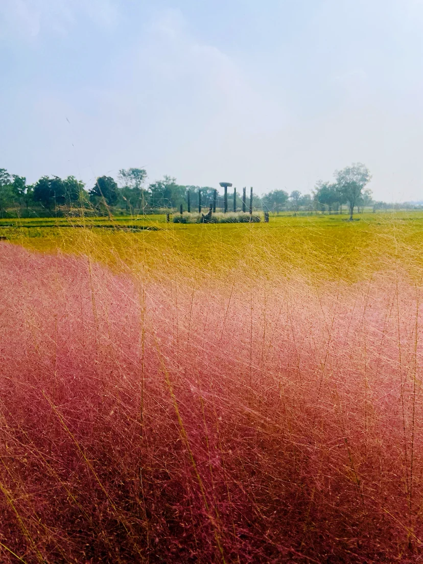 3️⃣-4️⃣打卡小众公园,马家浜考古遗址公园,里面的粉黛乱子开了,跟马家浜文化相映成趣。