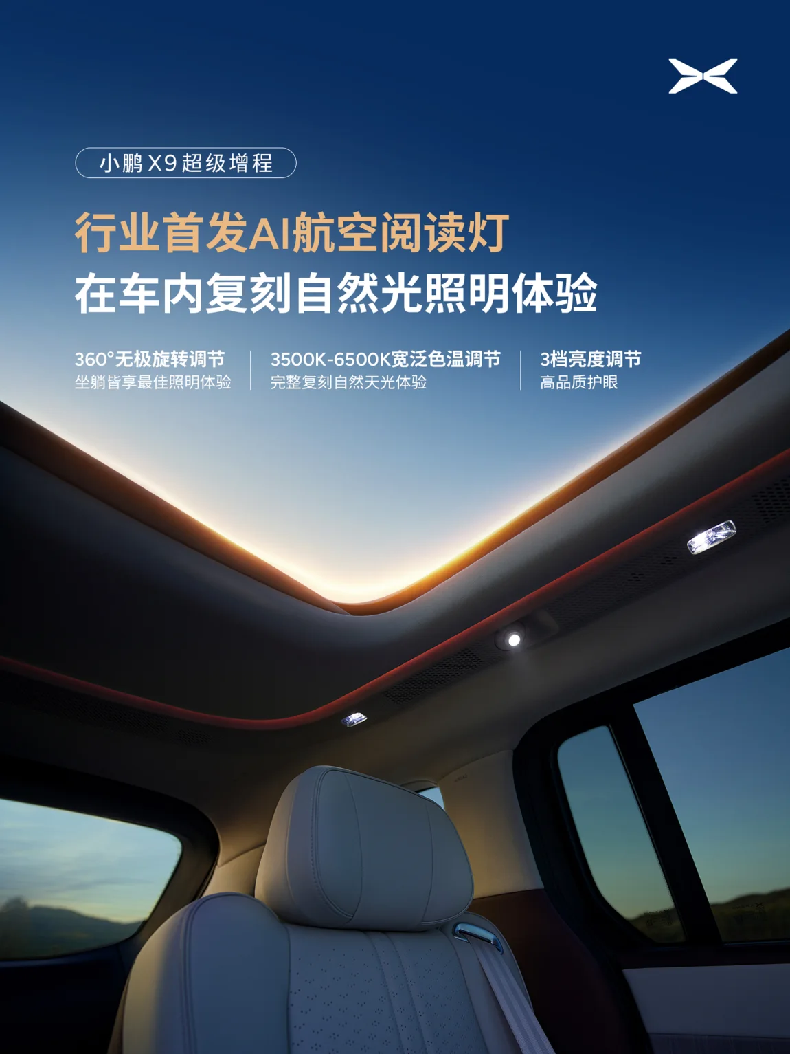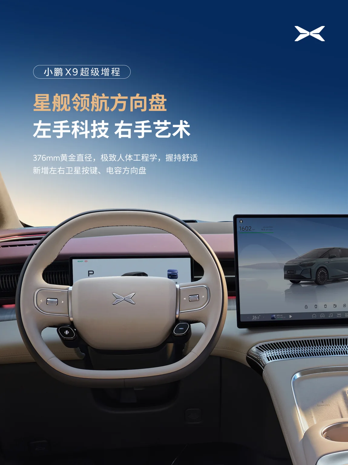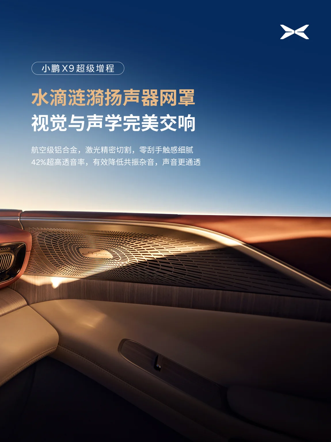 小鹏X9超级增程内饰全面焕新!全新内饰颜色「云间玫棕」,玫瑰棕+静谧白拼色,更适合家庭的高端奢适暖色调 4.2米进口阿尤斯真木内饰,同级最长的全车真木长度星舰领航方向盘搭载左右卫星按键,左手科技右手舒适行业首发AI航空阅读灯,坐躺皆享最佳照明体验水滴涟漪扬声器,视觉与声学完美交响💫全新二排内饰造型 ,细节诠释