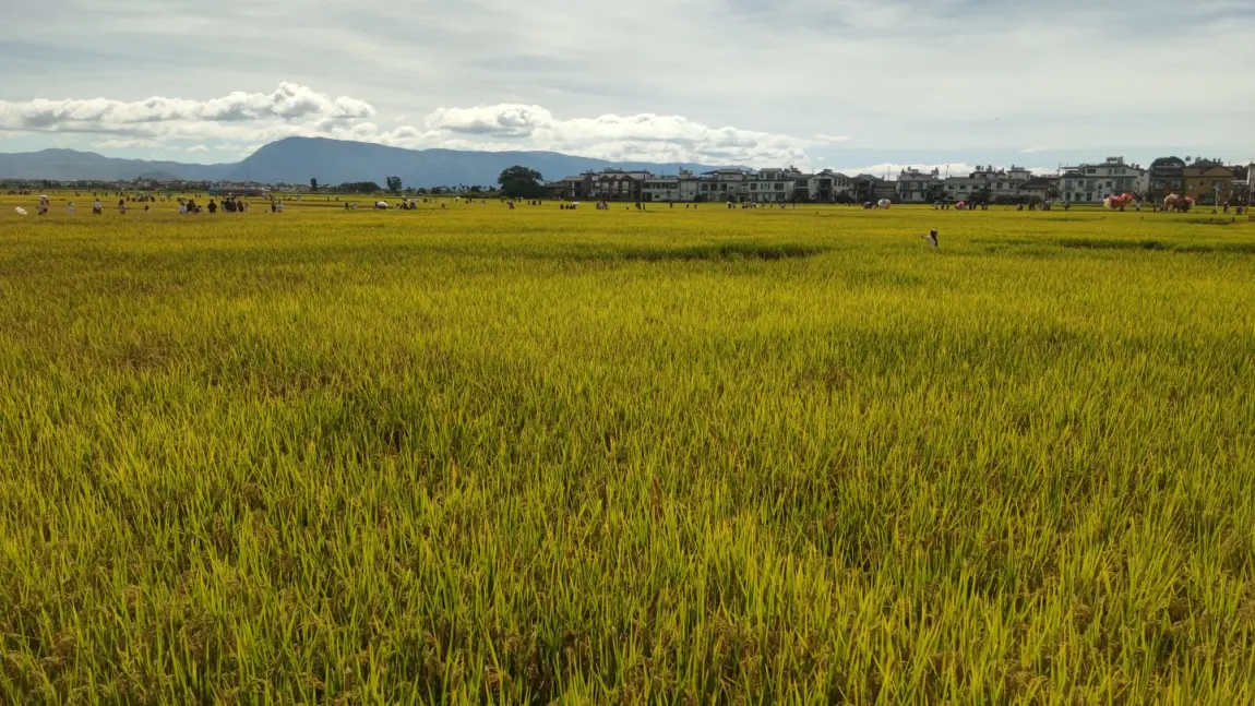 惊喜的是在喜洲那段。赶上稻田景观,金灿灿的一片,我们干脆把车停在路边上,开着空调在车里睡了个午觉——反正电费便宜,一点都不心疼。在双廊看日落的时候,可以把座椅放平,透过天幕看晚霞,比在观景台人挤人强多了。