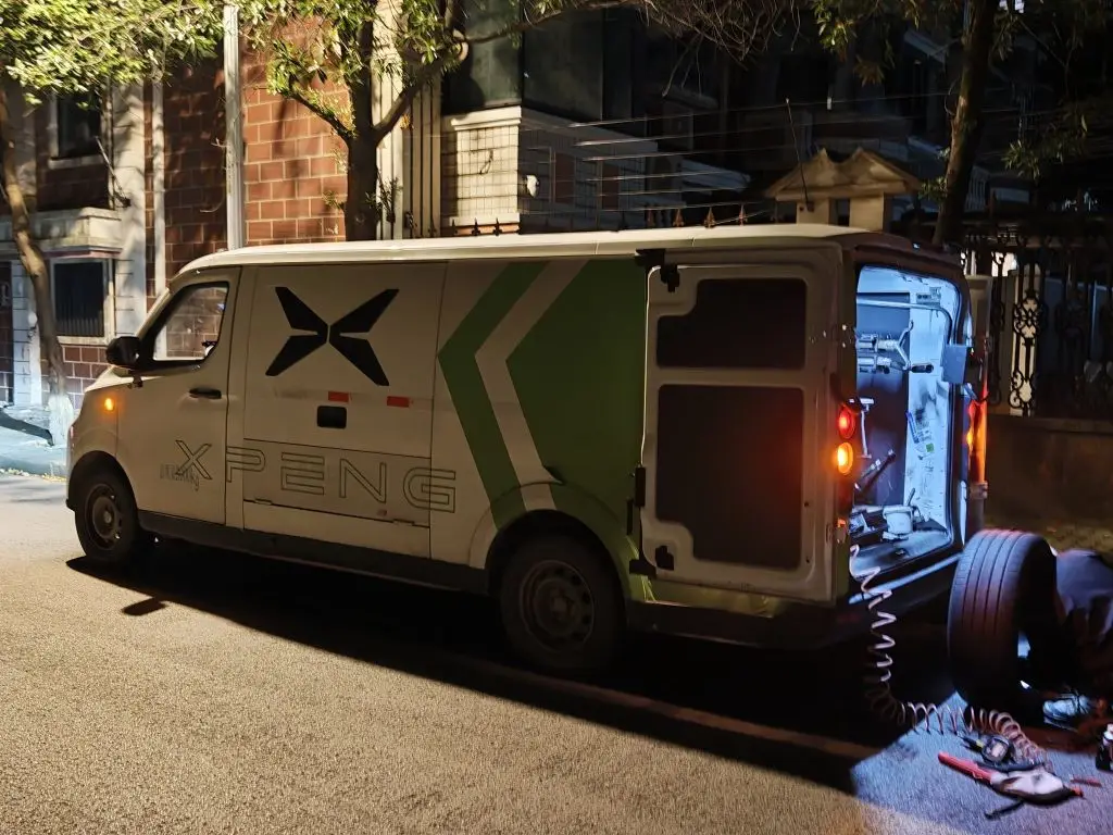 🚗补胎过程记录- 轮胎漏气一直没补,今天打开APP下单补胎服务- 大概1小时,小鹏的服务车就到了,车身上还有明显的标志- 师傅动作挺快的,全程在车边操作,没一会儿就弄好了💡使用感受1. 免费服务这点真不错,省了一笔开销2. 不用自己开车去找修理店,在家门口就能搞定3. 晚上也能上门,这点挺方便的#小鹏汽车 #汽车服务体验