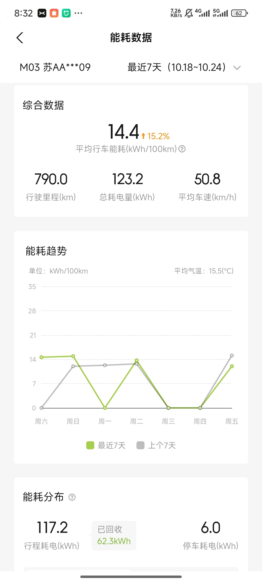 在这个金秋十月,我的小鹏M03成为了我最可靠的出行伙伴。整个月份里,它陪伴我穿梭于城市的大街小巷,行驶里程达到了790公里,总耗电量123.2kWh,平均行车能耗稳定在14.4kWh/100km,这样的能耗表现让我相当满意,也体现了小鹏M03在能源利用上的高效。