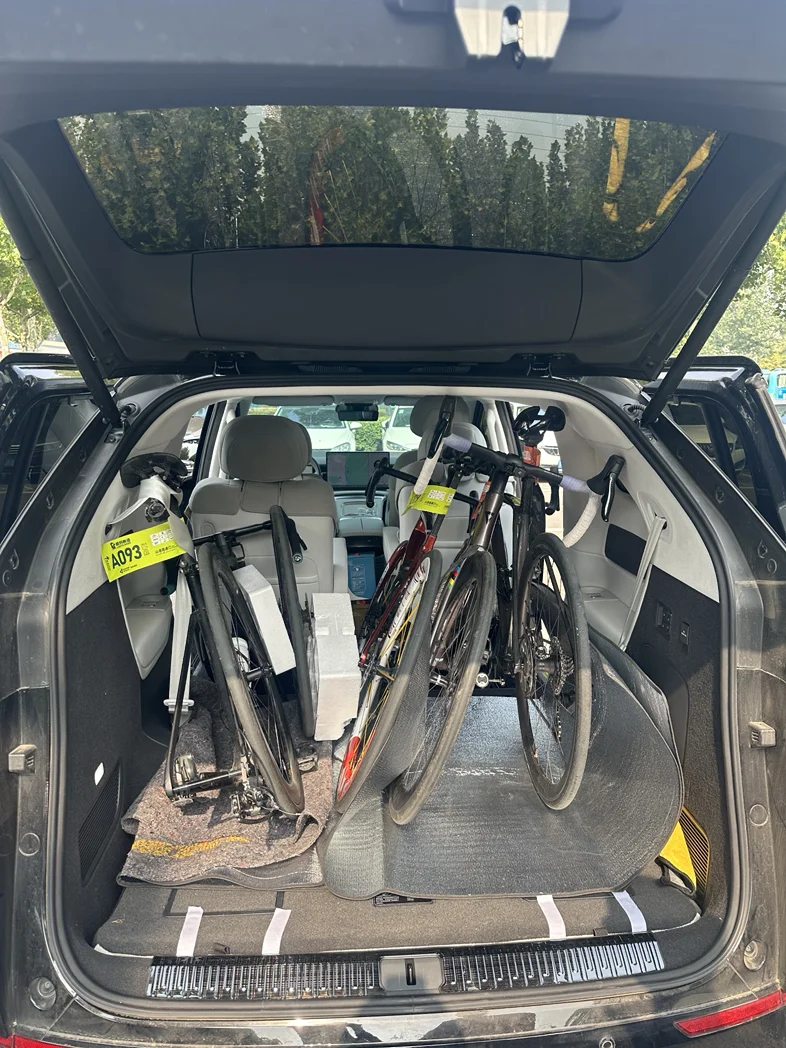 昨天拉着四辆自行车去崂山参赛,更是见识了它的装载实力。2554L的拓展容积果然名不虚传,轻松塞下所有装备,同行骑友都夸能装。