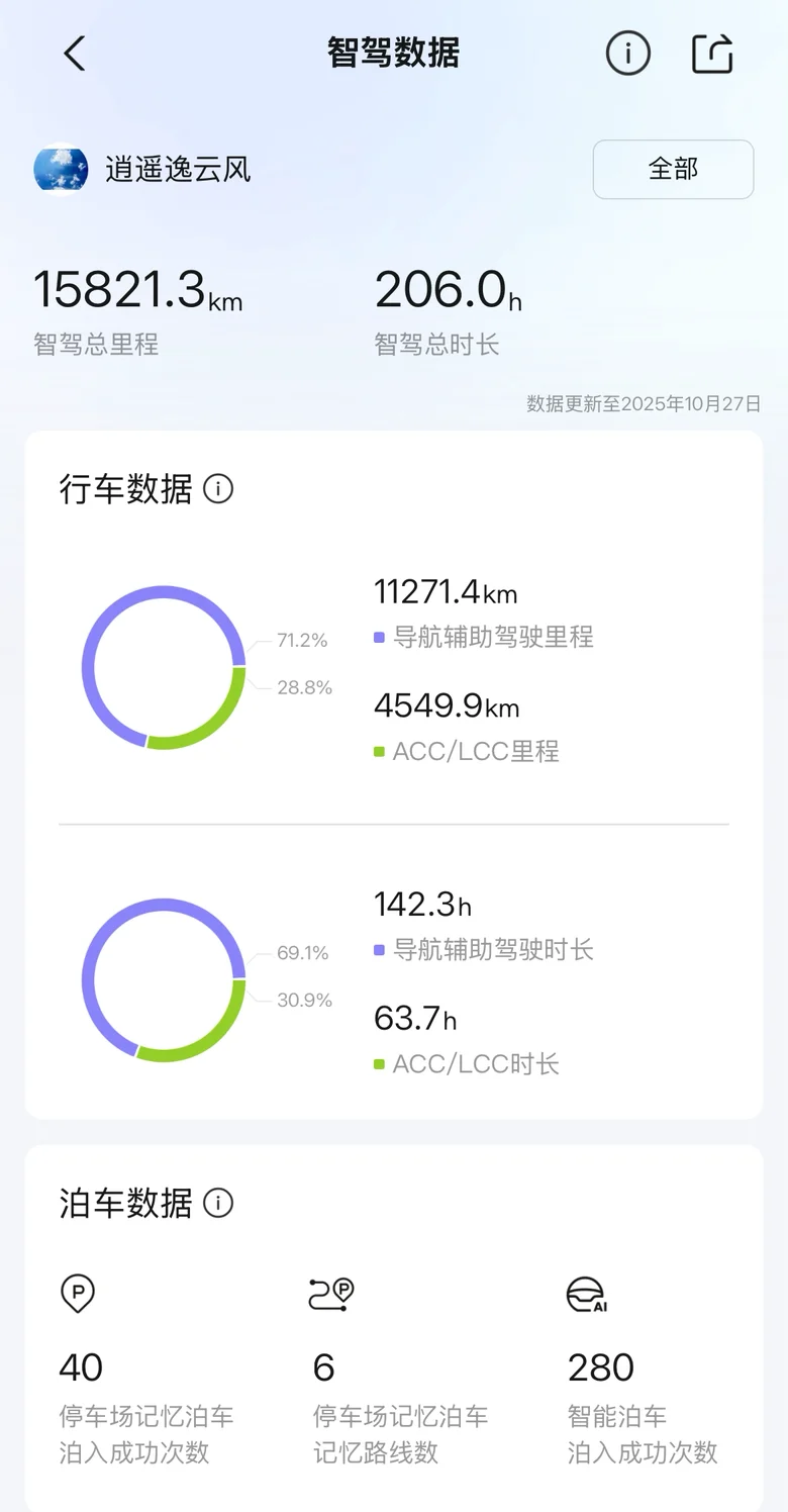 再次总结一下我的胖虎金秋十月行程记录,截止到10月27日,十月行驶里程也达1874公里!平均一天近70公里!导航辅助驾驶也占比近20%!感恩有胖虎的陪伴,让每一程都精彩!