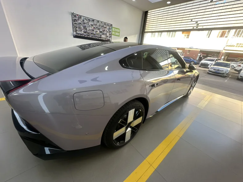 第一眼见到实车,依旧被它的颜值所征服。流线型的轿跑身姿,贯穿式的光剑大灯在解锁时缓缓点亮,仪式感瞬间拉满,仿佛它在用一种未来科技的方式向我致意。我选的这个颜色在阳光下格外耀眼,路上的回头率便是对它设计最好的肯定。