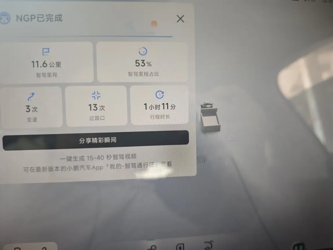 @鹏友俱乐部 #我的10月用车总结# 10月开着我的小鹏打卡了城郊的枫叶林,NGP辅助驾驶(基于Xmart OS 4.3.0)在盘山路上很稳。还发现家附近商场的小鹏超充站,充电快又不用排队。这个月能耗百公里12kWh,比预期省不少。车内的全场景语音交互也让旅途充满趣味。“你好,小P,打开座椅加热,播放周杰伦的《枫》”,话音刚落,温暖的座椅和应景的旋律就同步到位,把秋日山风的微凉都驱散了。后排的朋友还通过车载KTV功能来了几场“演唱会”,原本枯燥的车程变成了移动的欢乐场。