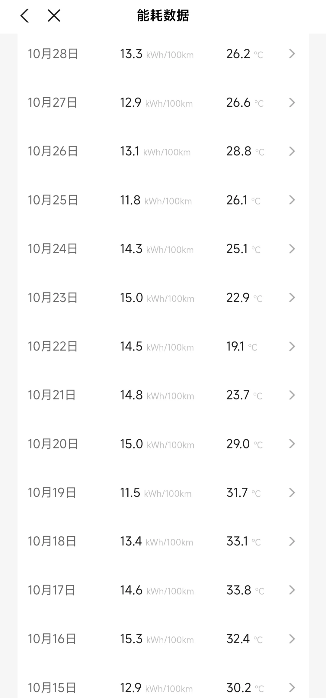 10.15 提车到现在的能耗数据统计