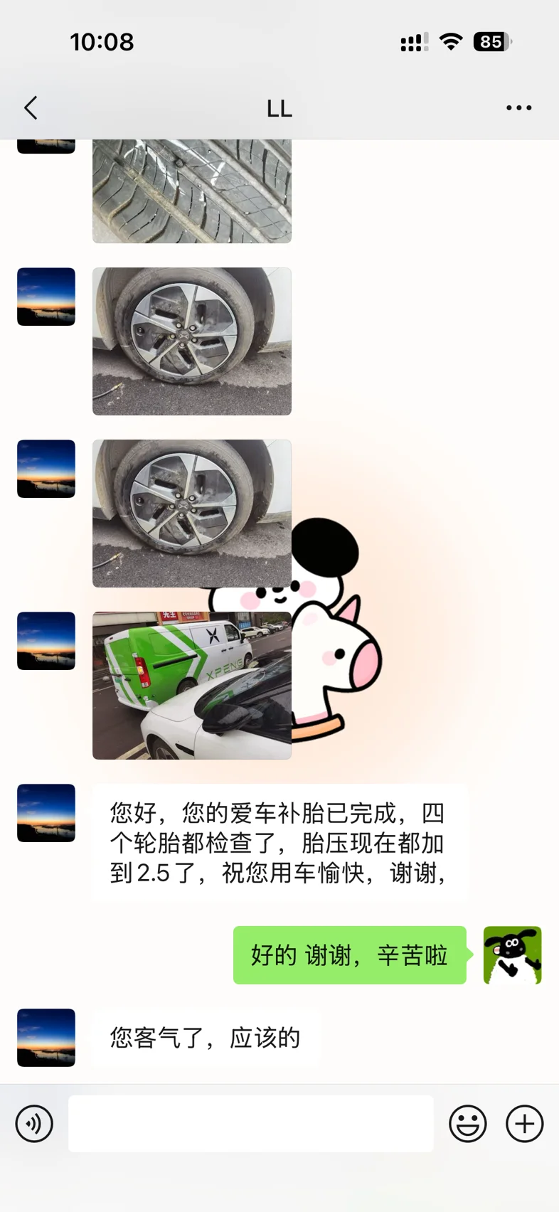 晚上停车不小心被钉子扎到了,因为是凌晨,第二天一大早师傅就打电话,全程很细心,服务特别好,很有耐心,给小鹏和师傅点个赞